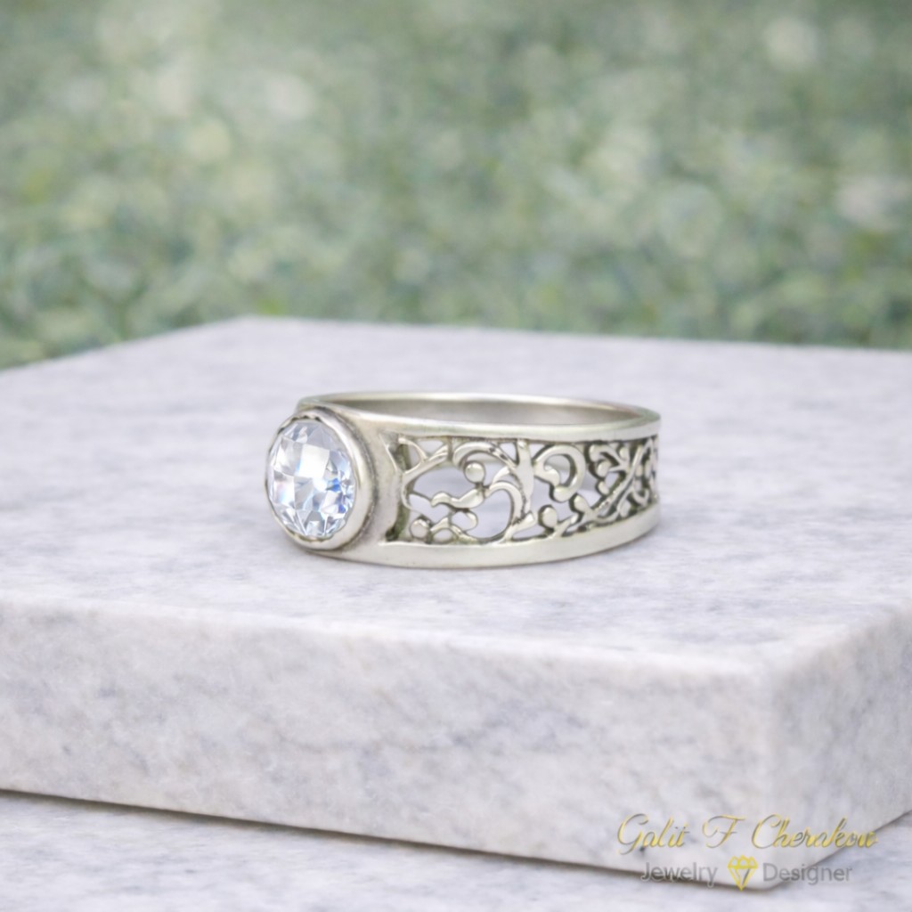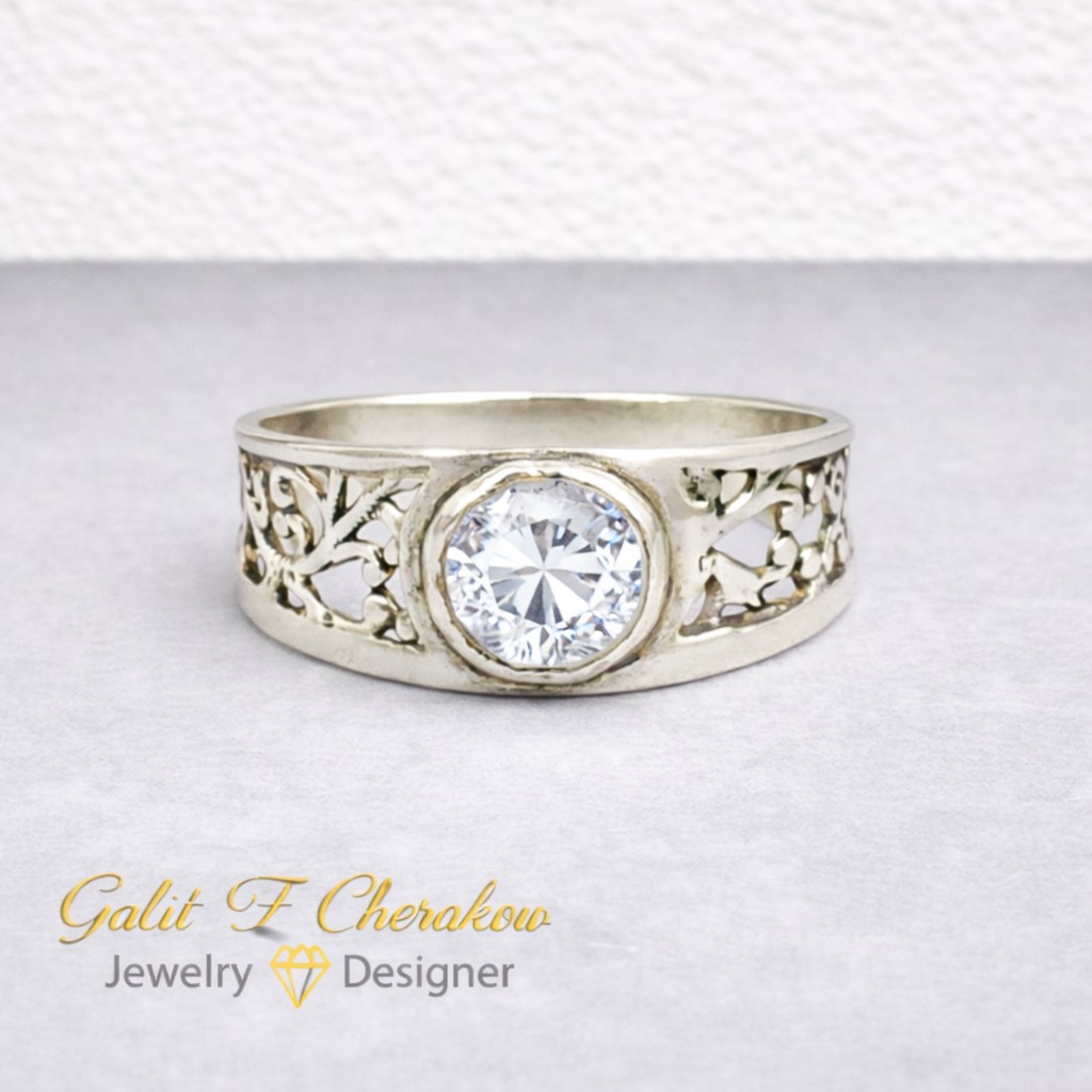 עמוד הבית | חנות | טבעת כסף מעודנת וזירקון
