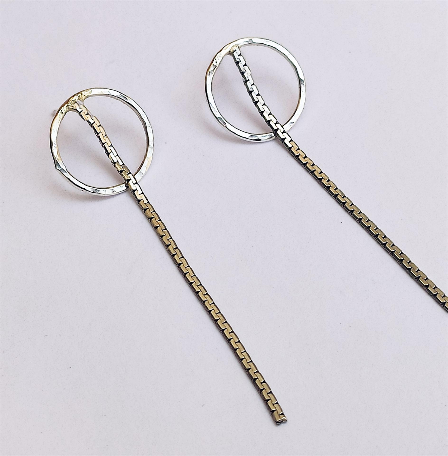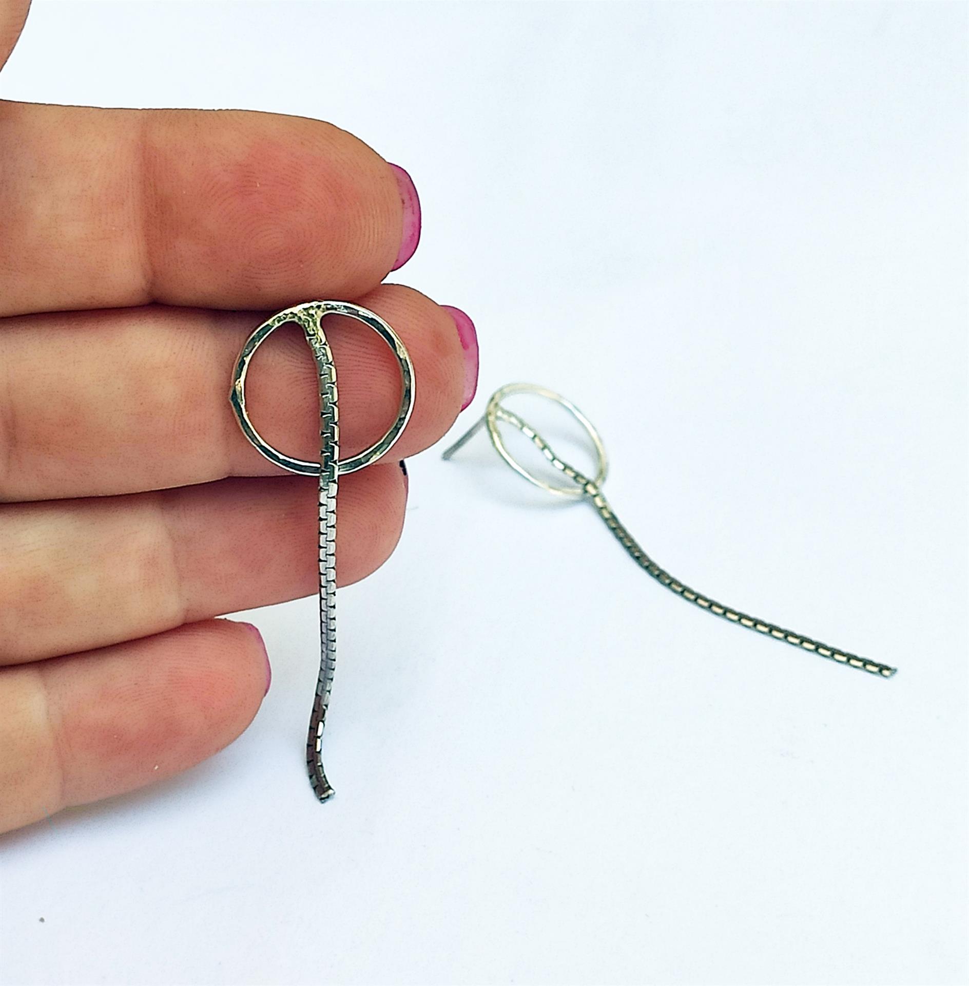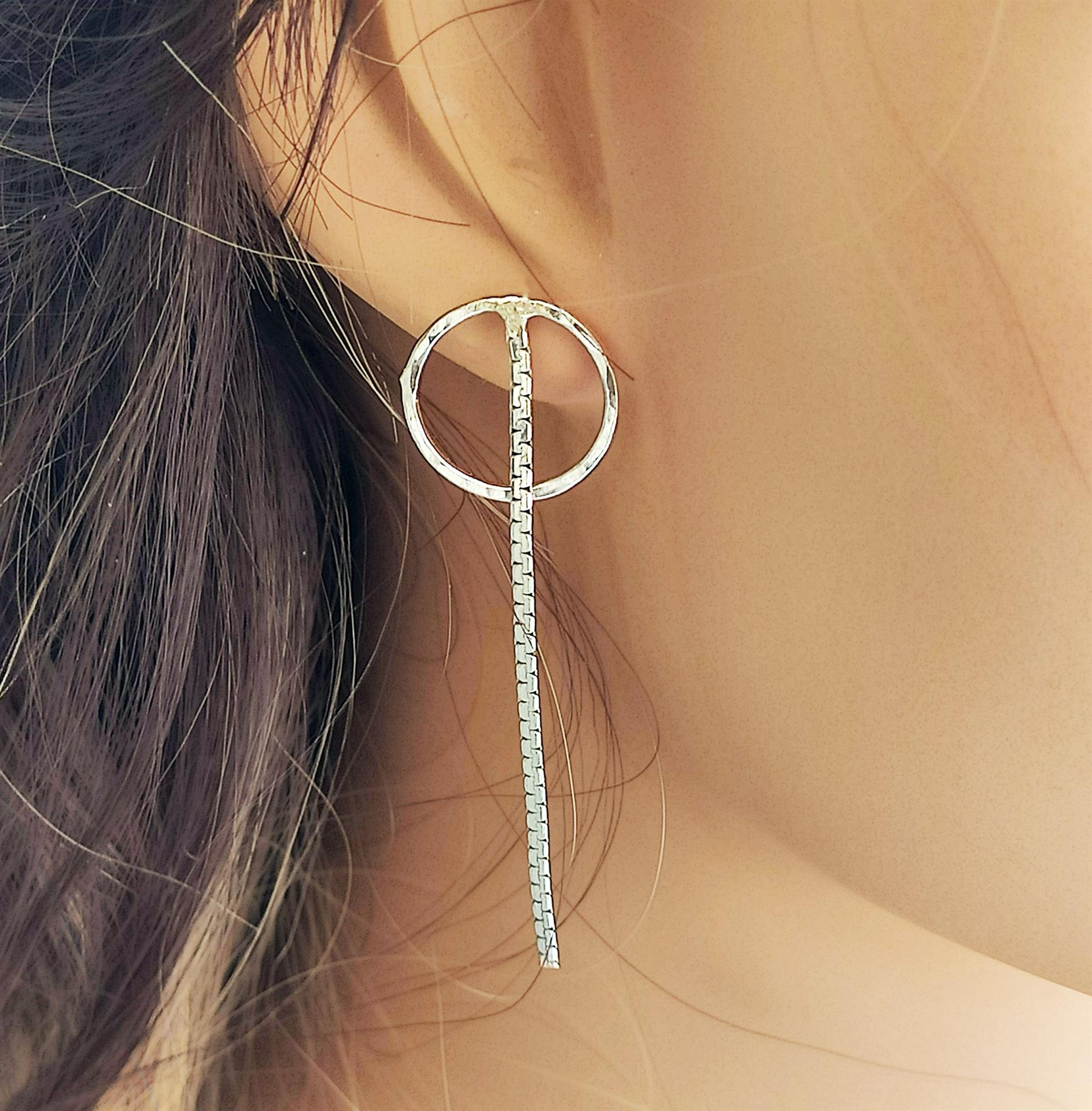 עגילים כסף עבודת יד לולאה עם שרשרת אלגנטים הם פריט ייחודי המושלם עבור נשים שמחפשות תכשיט מרהיב ומודרני. עגילי החישוק הצמודים לאוזן מעניקים מראה מודרני ואופנתי, בעוד שהשרשרת השטוחה מוסיפה שיק ואלגנטיות לעיצוב הכולל חישוק משולב.