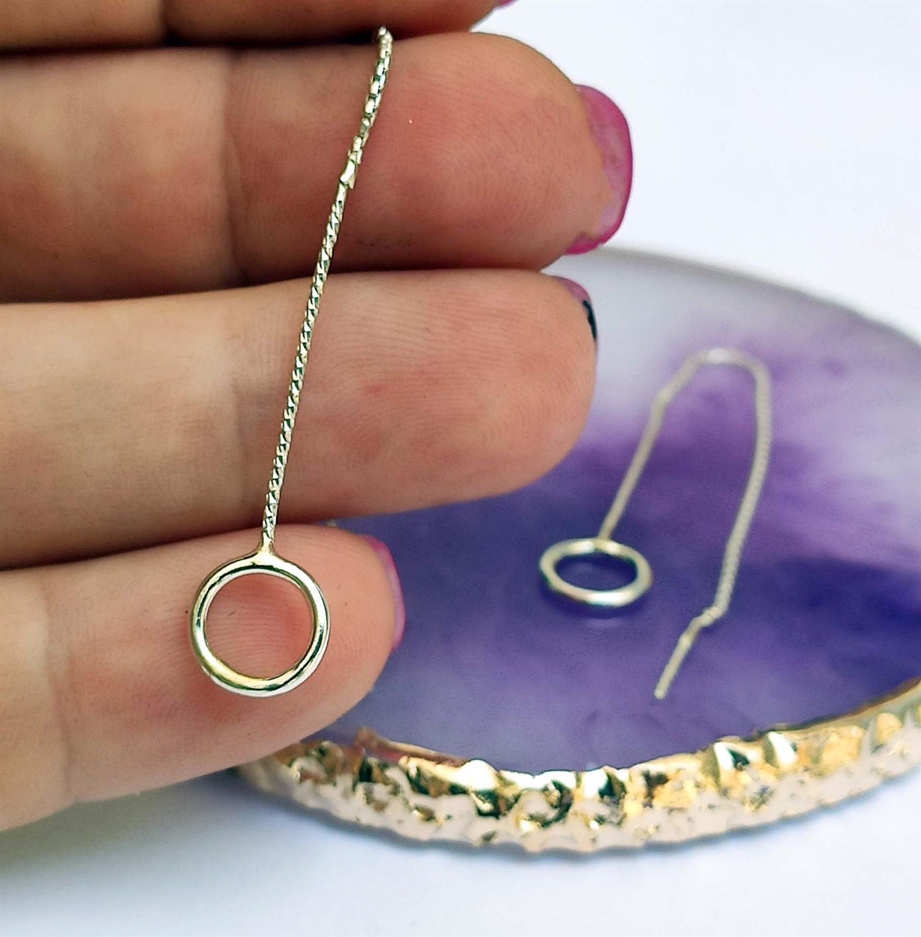 העגילים מגיעים עם שרשרת ארוכים וחישוק עדין, המוסיפים חן ויופי לעיצוב. השרשרת העדינה מתאימה במדויק לאוזן ומסתיימת בתליון לולאה עדינה המתנדנד בצורה חלקה ומרהיבה.