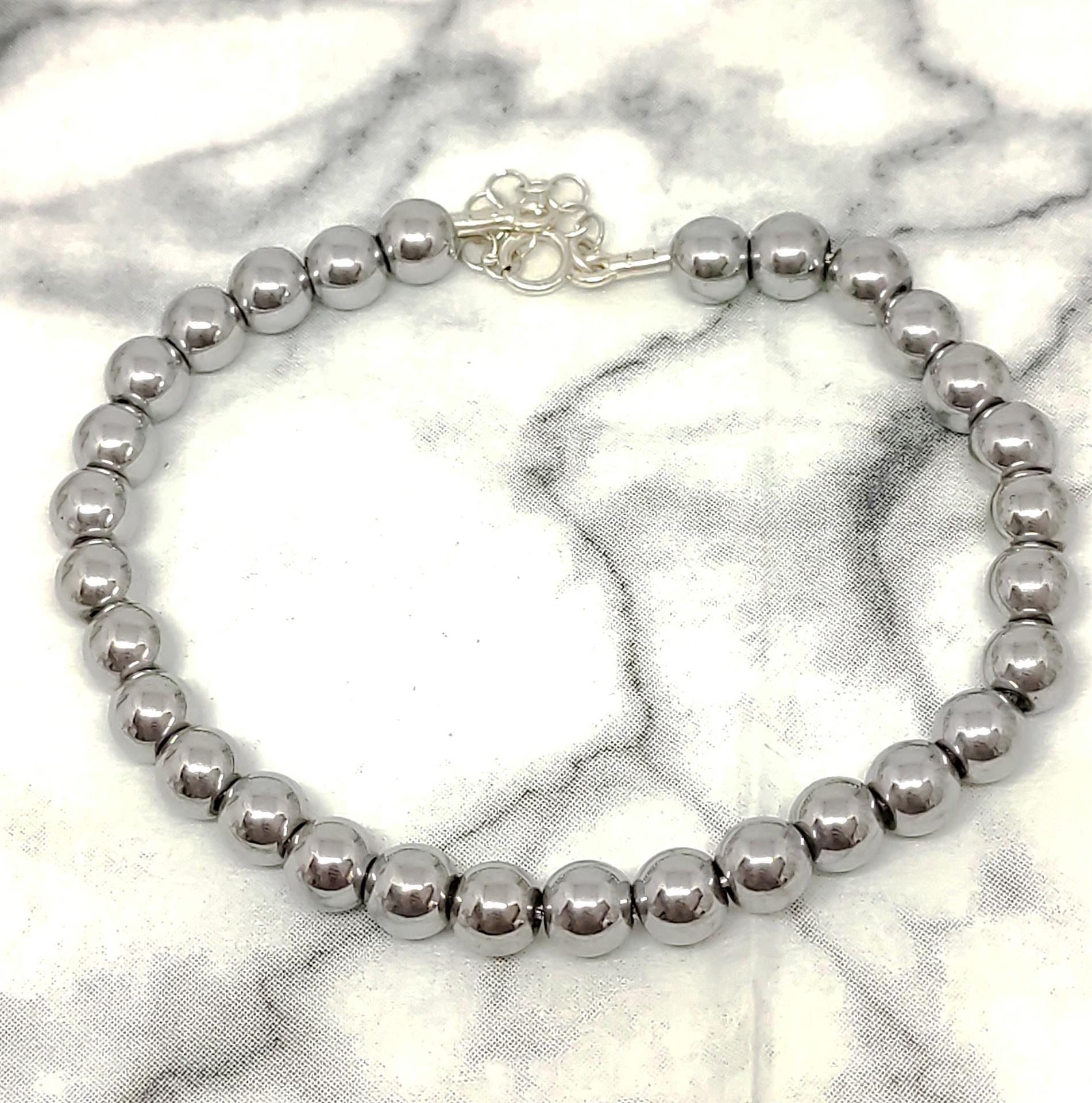 צמיד זה הוא תכשיט גברי קלאסי עם טוויסט מודרני. חרוזי ההמטייט האפורים כהים, בעלי הברק העמום והתחושה החלקה, יוצרים מראה עוצמתי ומתוחכם. ידועים גם בסגולותיהם המגנטיות הפוטנציאליות, חרוזי ההמטייט מוסיפים ערך נוסף לצמיד זה.