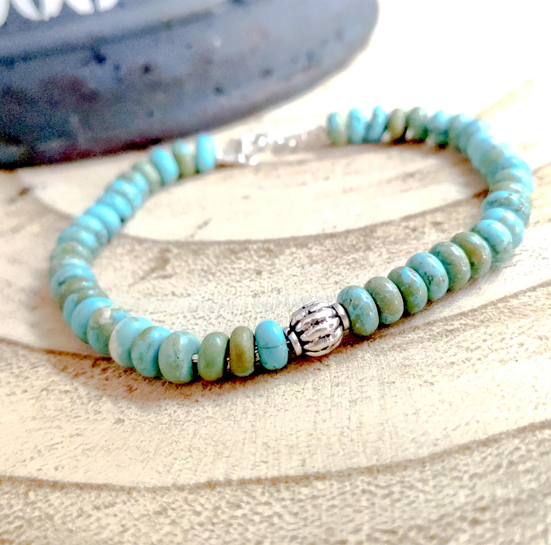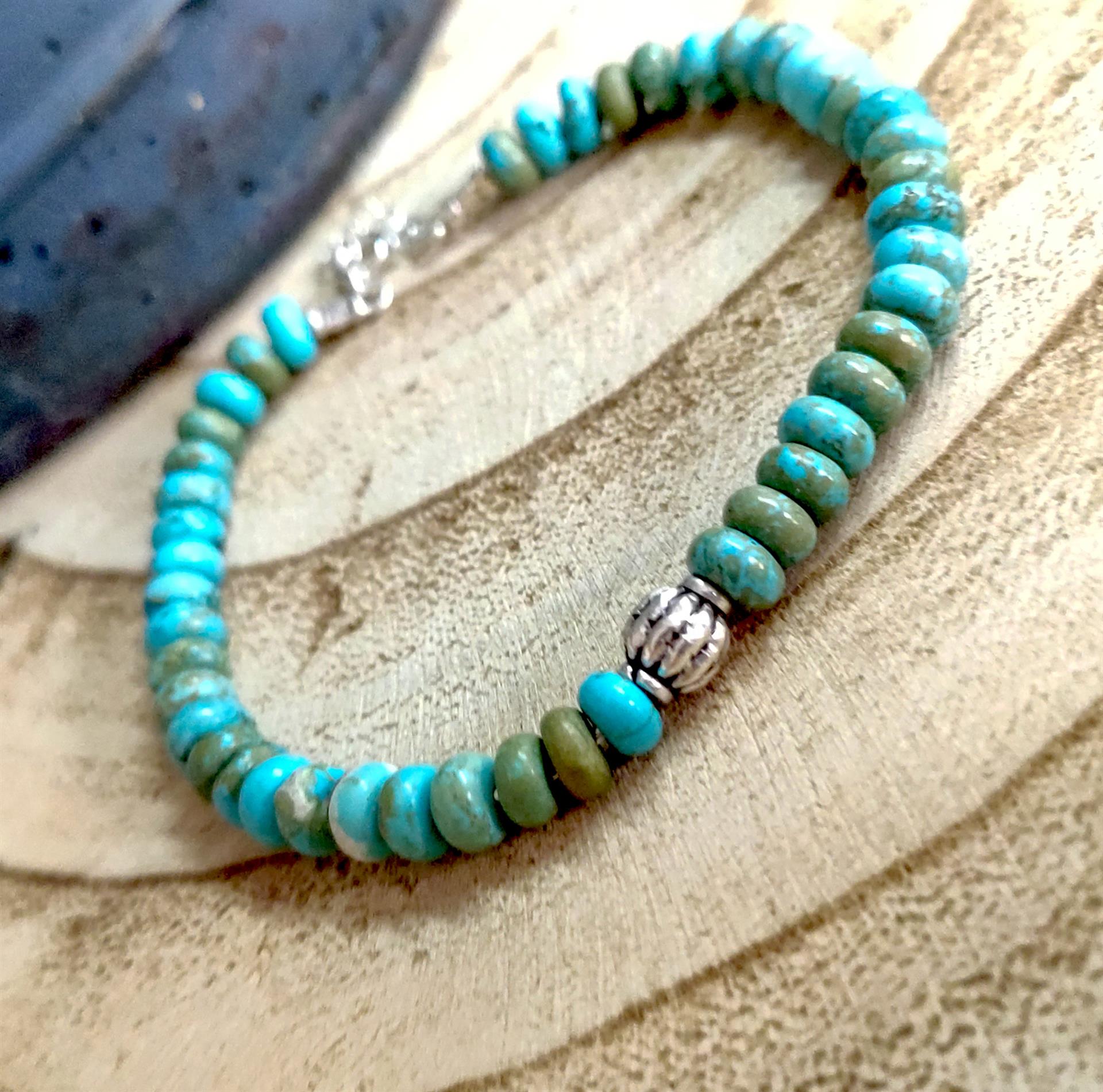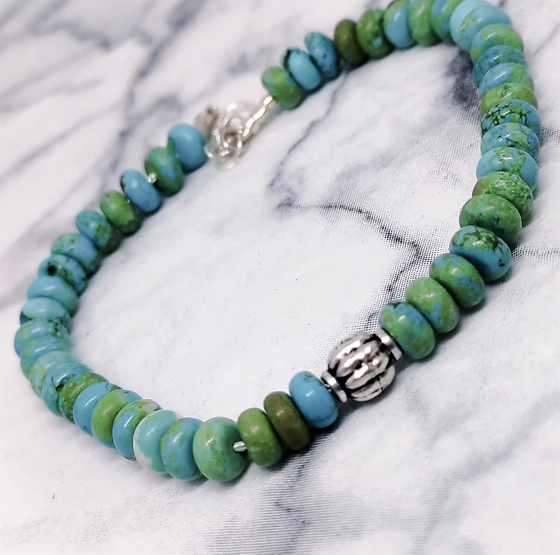 צמיד זה הוא תכשיט יוניסקס המשלב את קסם הטבע עם אלגנטיות מודרנית. חרוזי הטורקיז בגווני הכחול-ירוק המרהיבים משדרים סגנון חופשי ומרגיע, בעוד חרוז הכסף המרכזי, בגודלו ובגימורו, מוסיף נקודת מיקוד אלגנטית ונוכחות מרשימה לצמיד.
