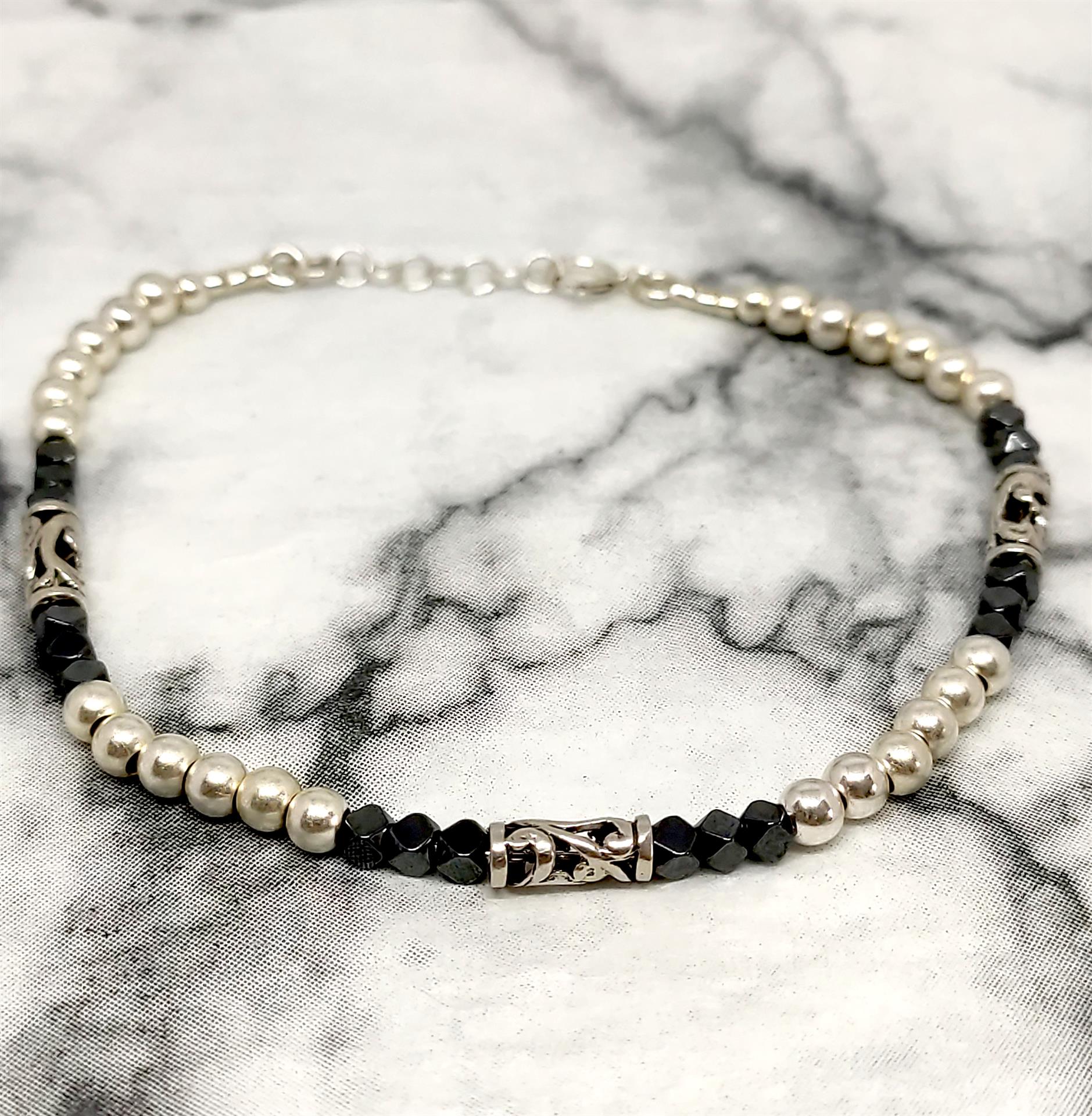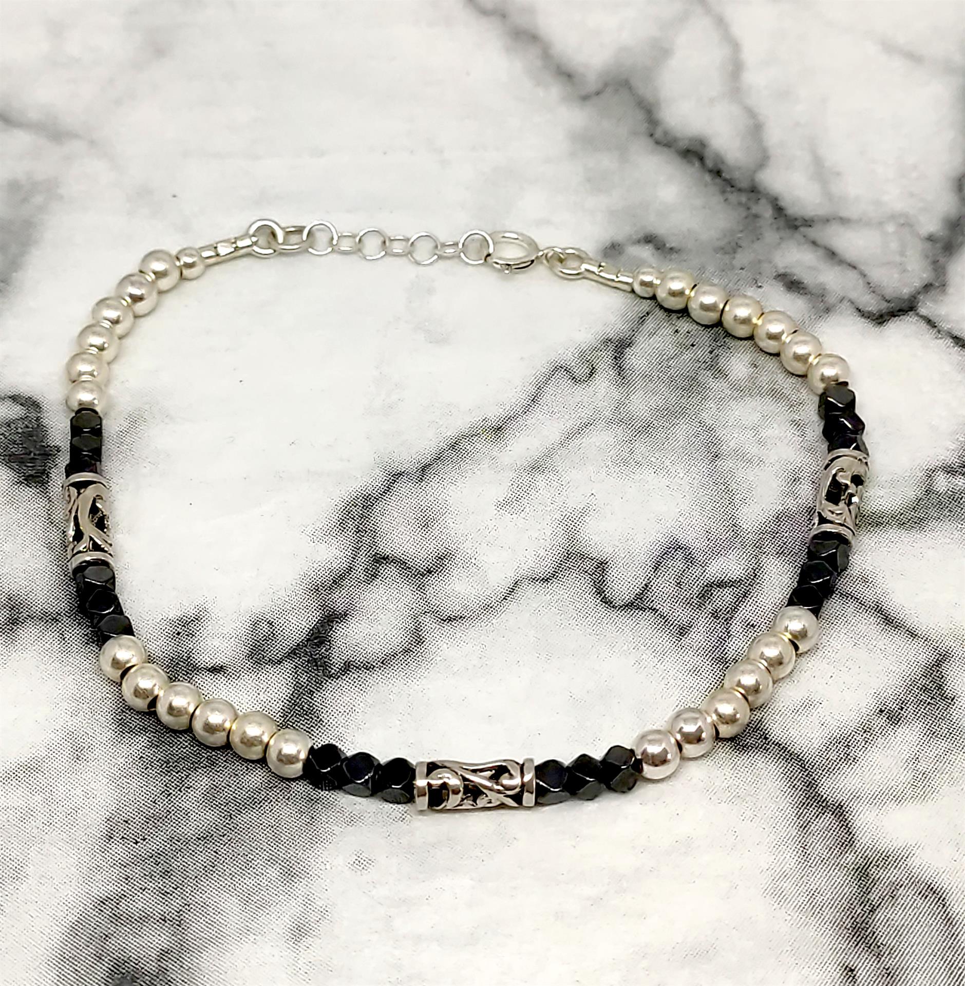 • גודל חרוזים: חרוזי הכסף 4 מ"מ, חרוזי ההמטייט 4 מ"מ