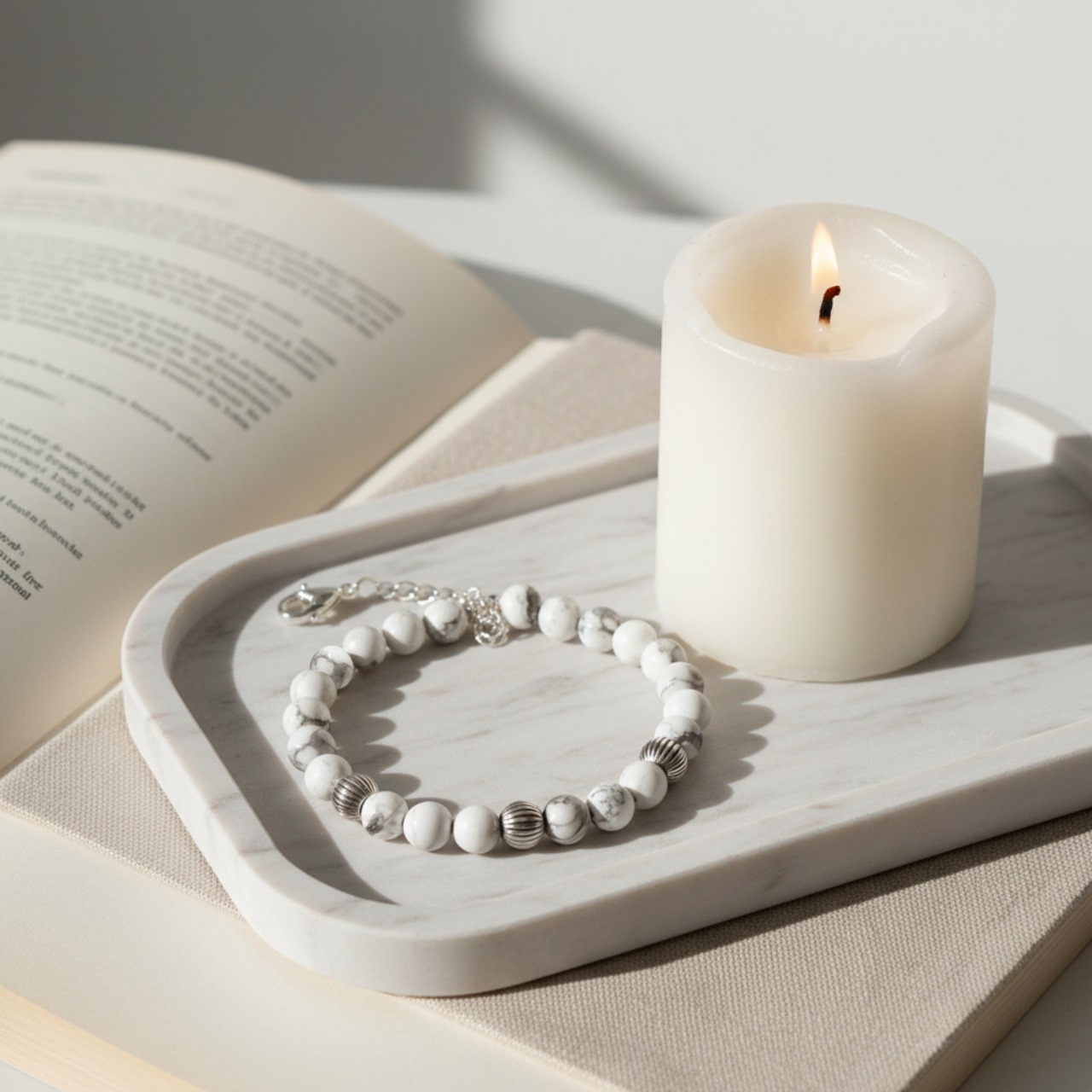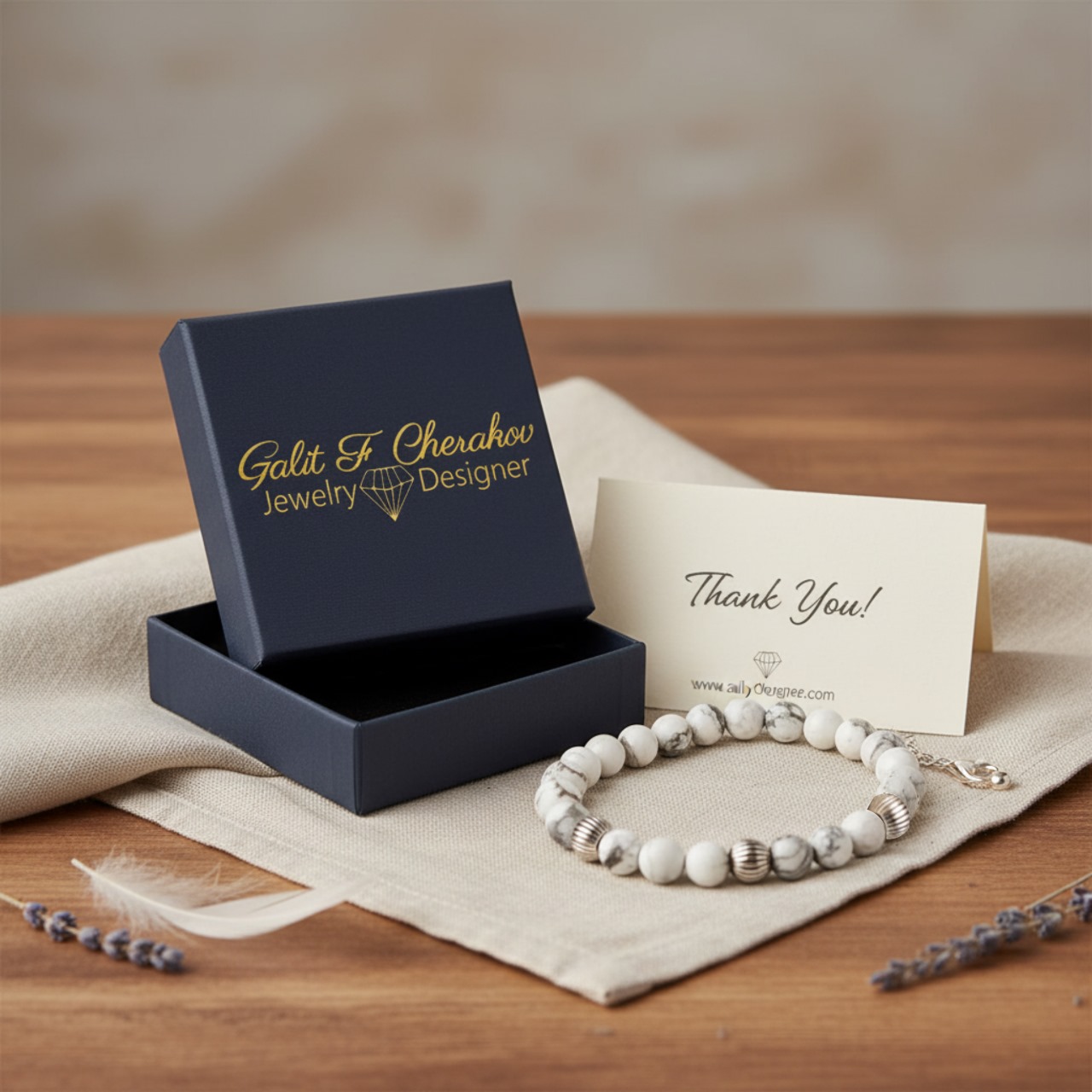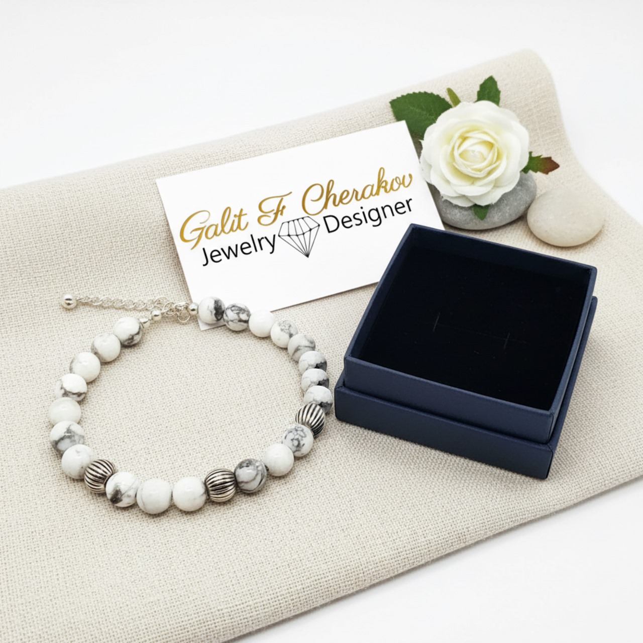 אבן ההאולייט ידועה כאבן של שלווה ובהירות מחשבתית, ולכן הצמיד מתאים גם כמתנה עם משמעות.
