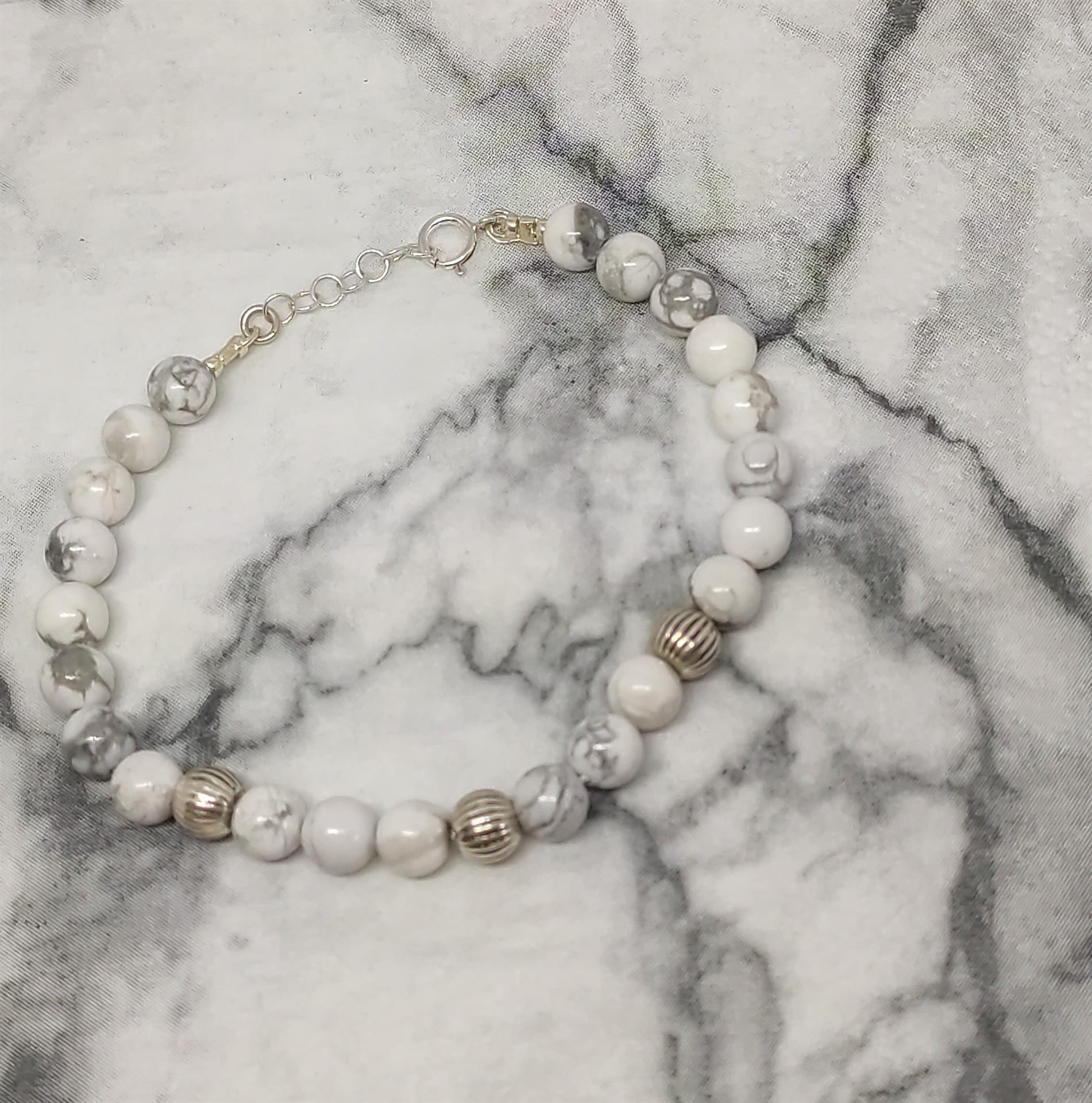 צמיד היולט הוא תכשיט אלגנטי בעבודת יד המשלב חרוזי האולייט טבעיים בגוון לבן-שיש עם חרוזי כסף 925 אמיתי.