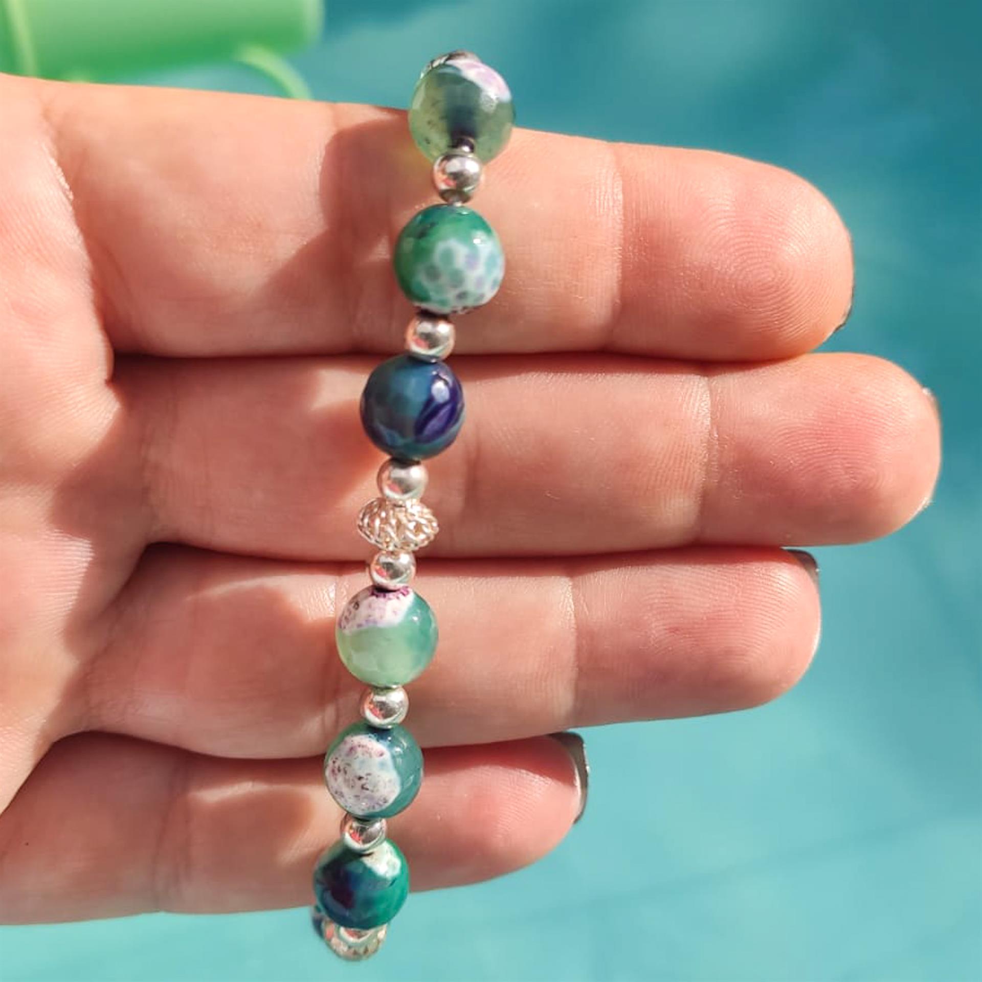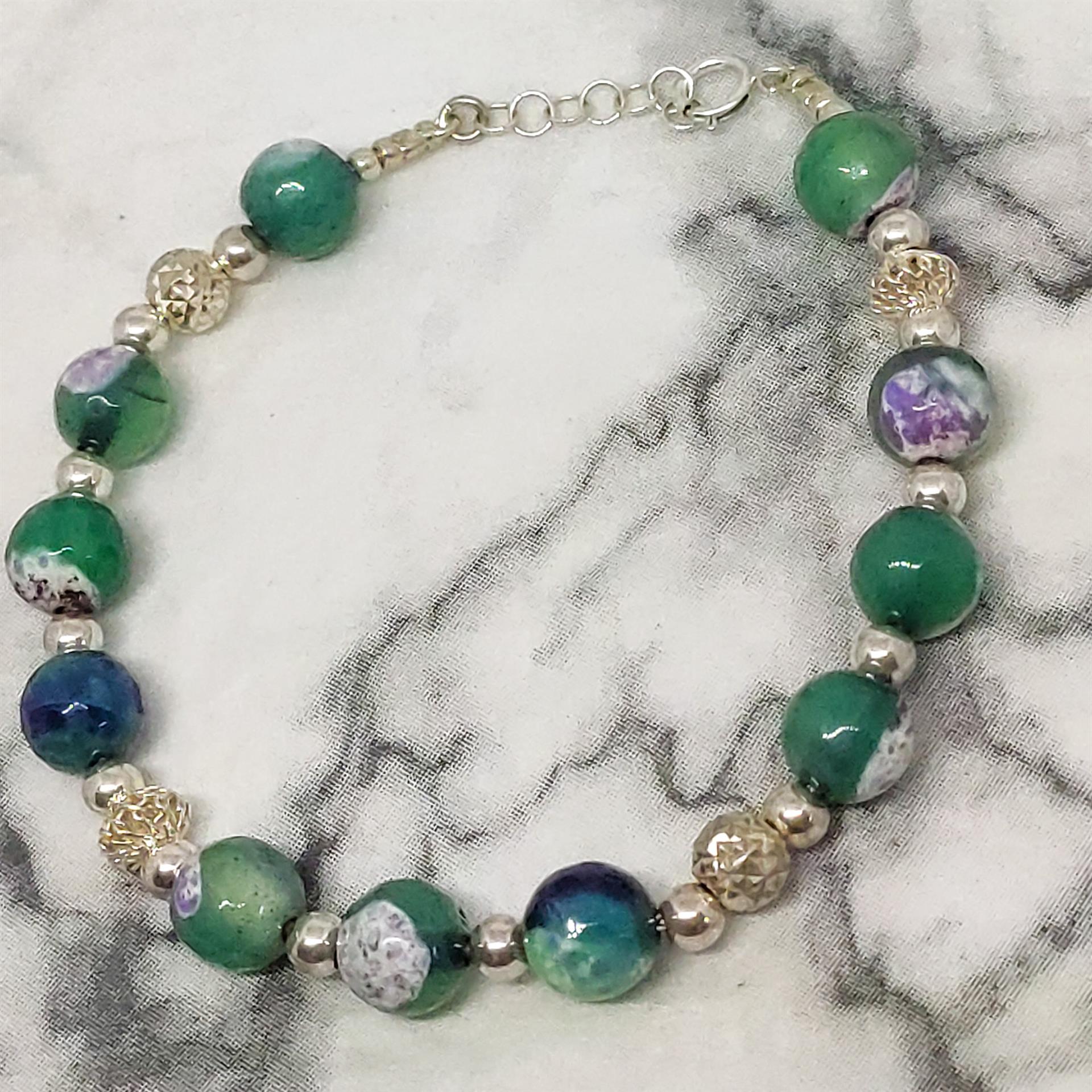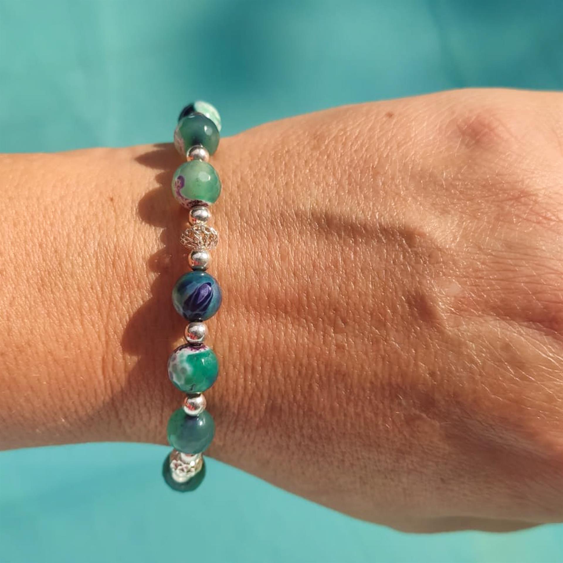 צמיד חרוזים ירוק-סגול