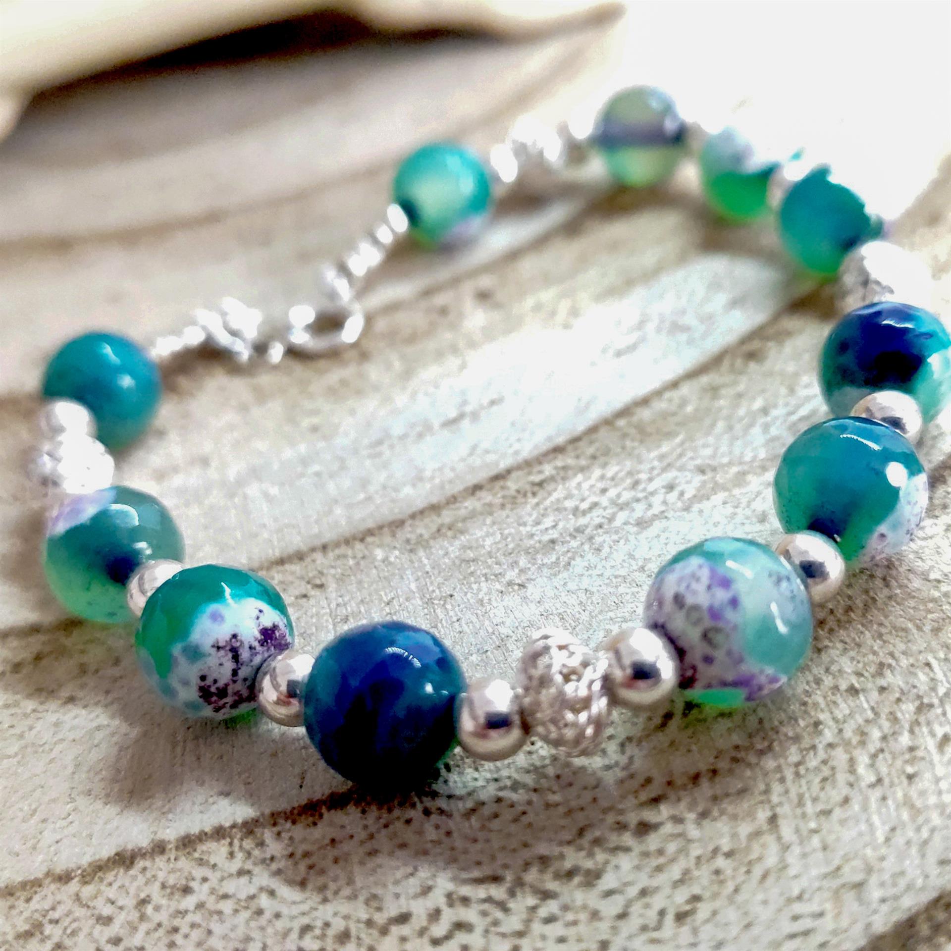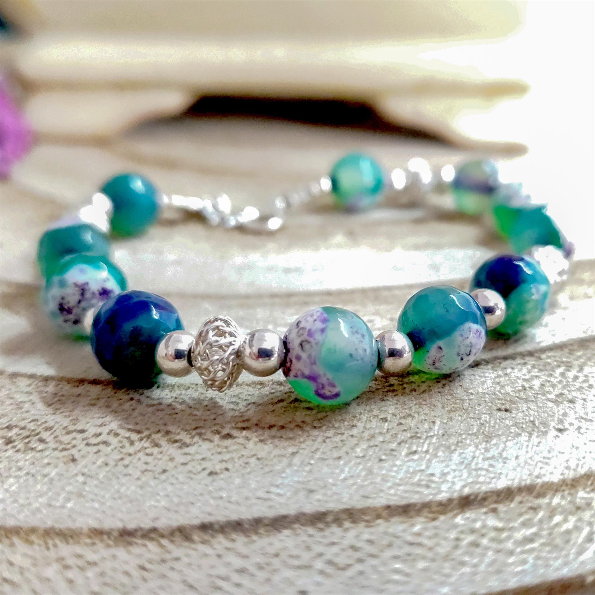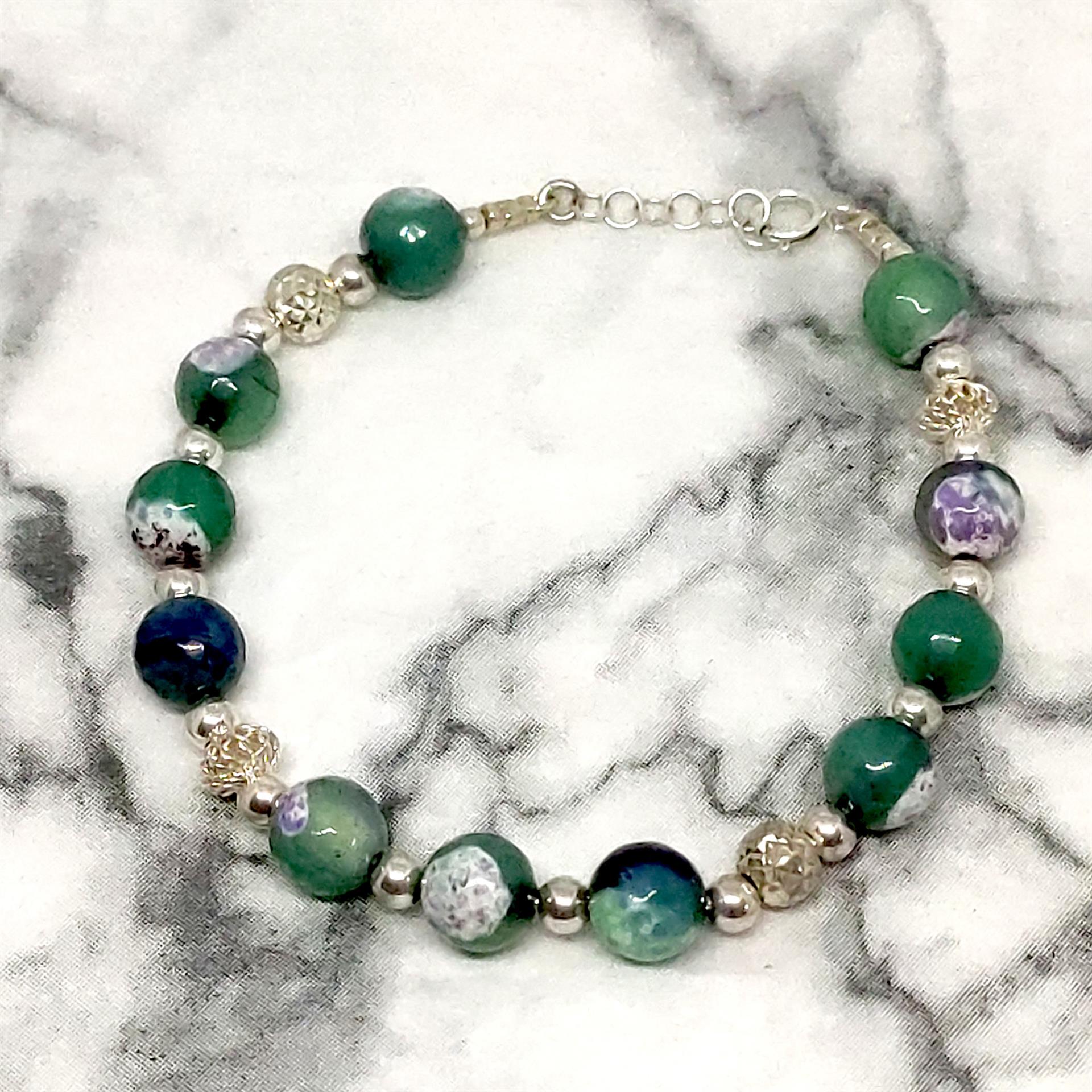 צמיד חרוזים ירוק-סגול