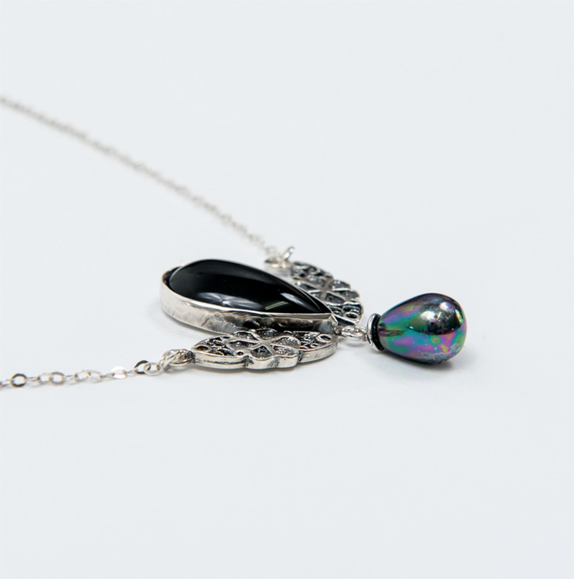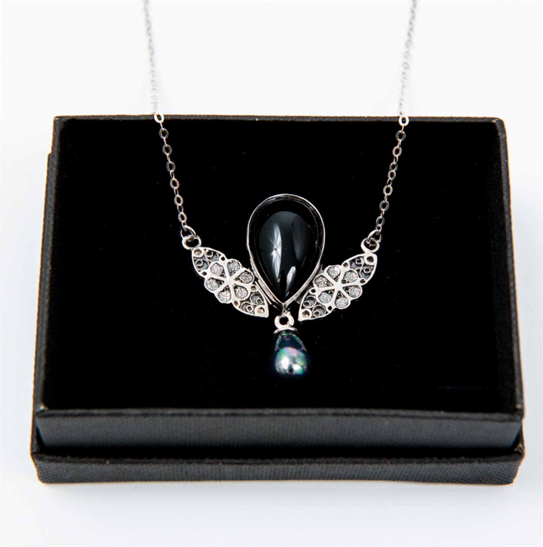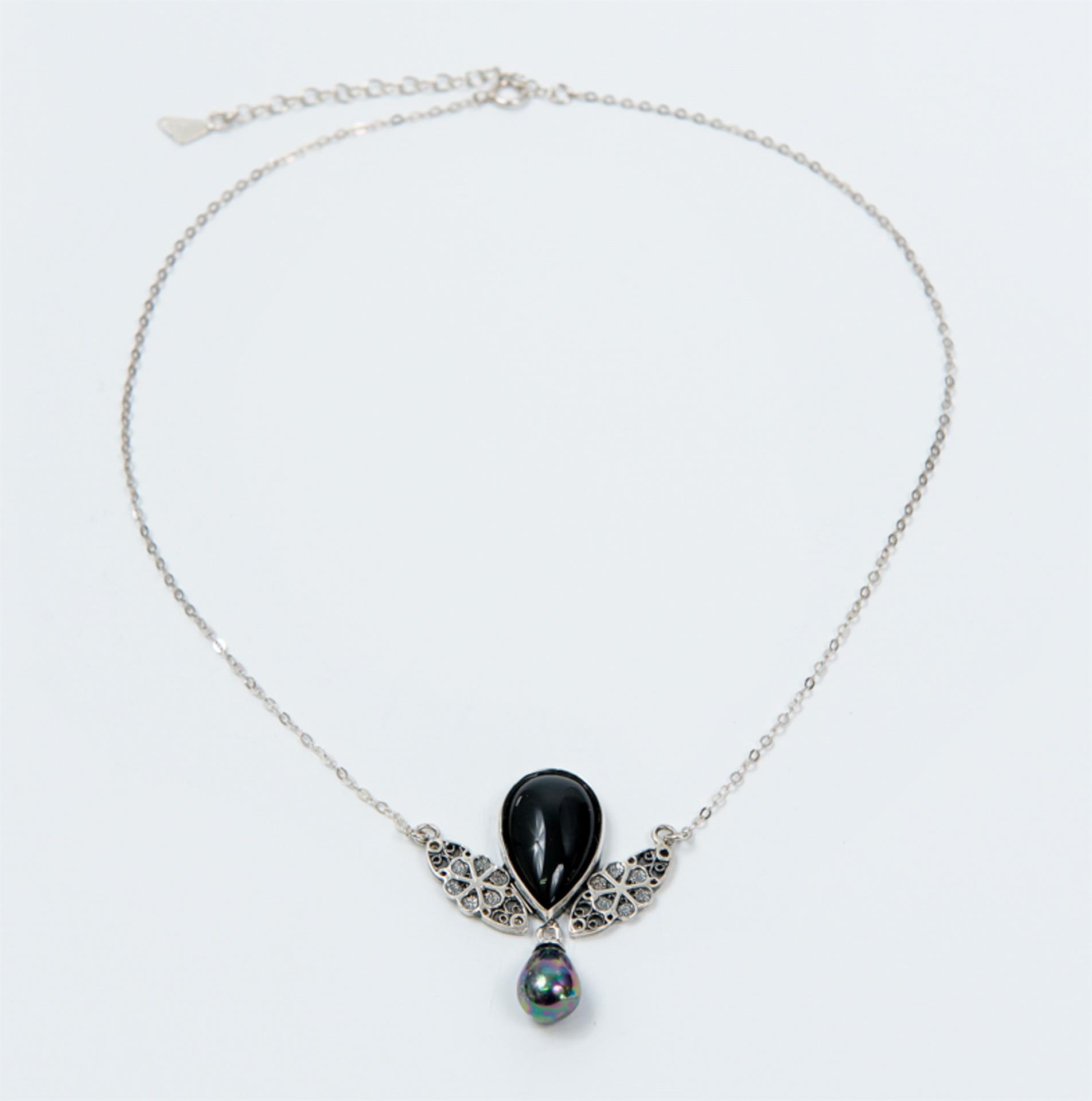 עמוד הבית | חנות | שרשרת כסף אבן שחורה ופנינה