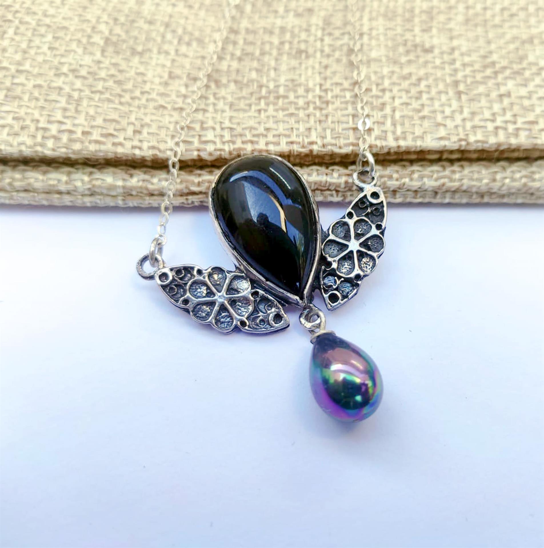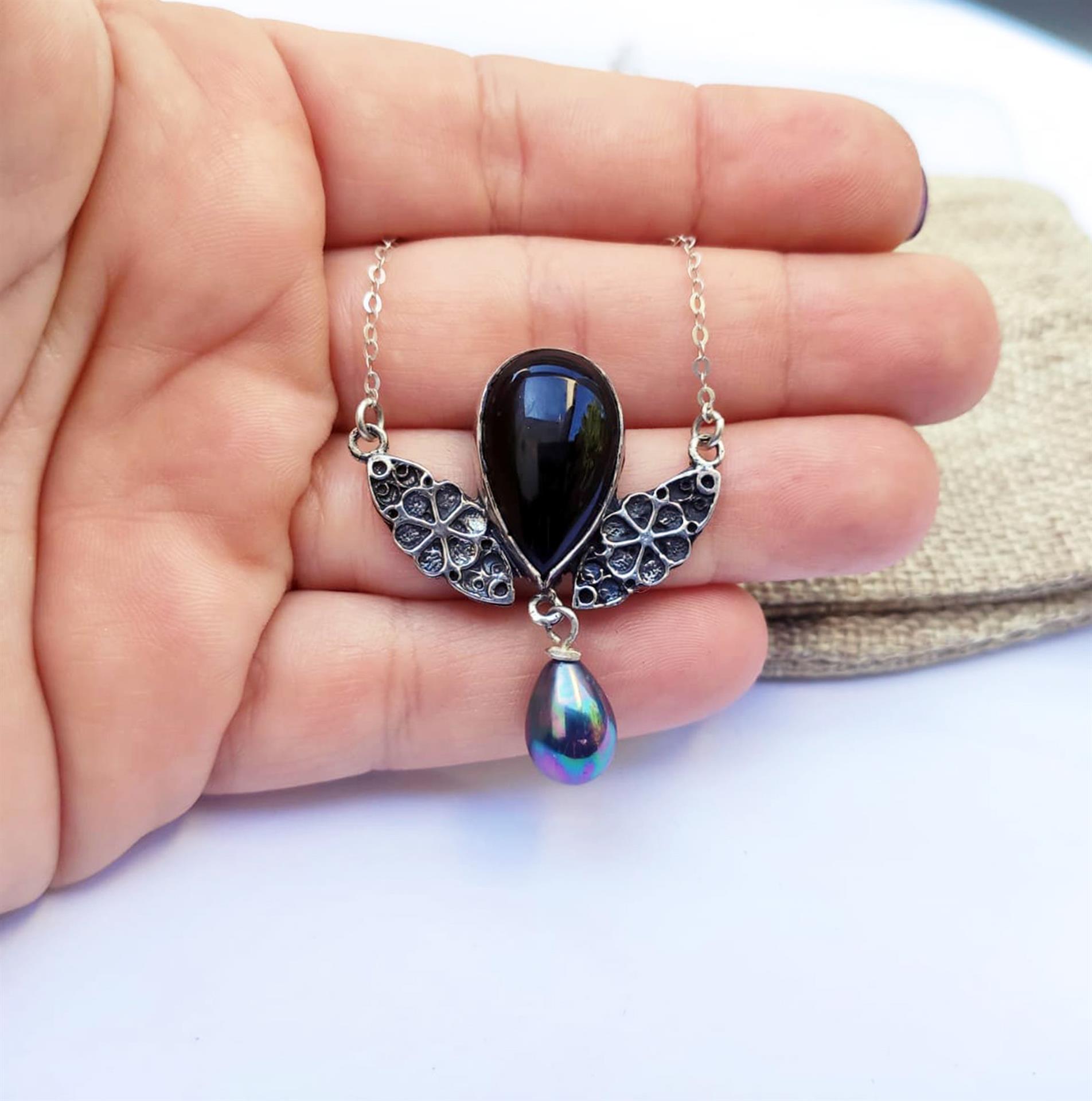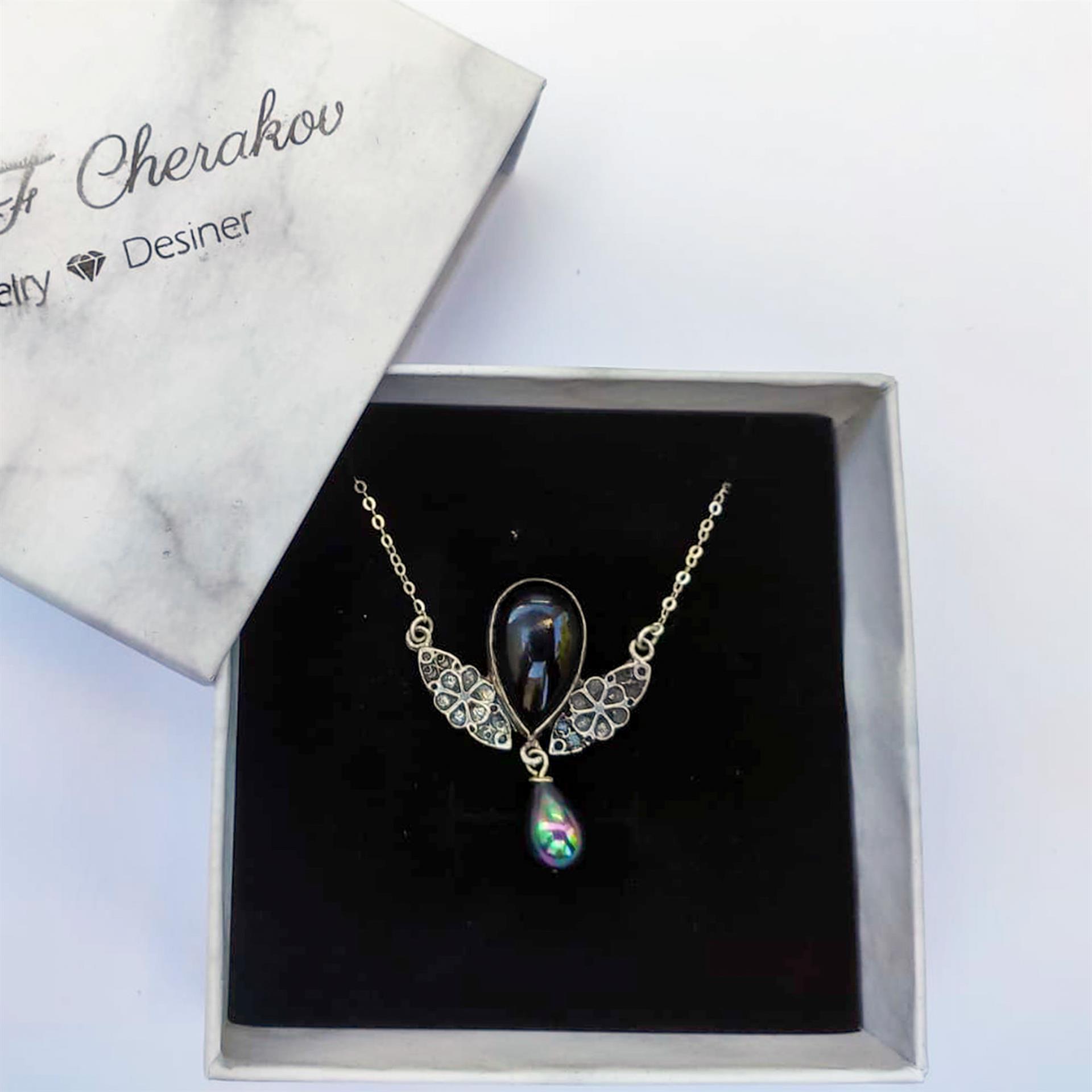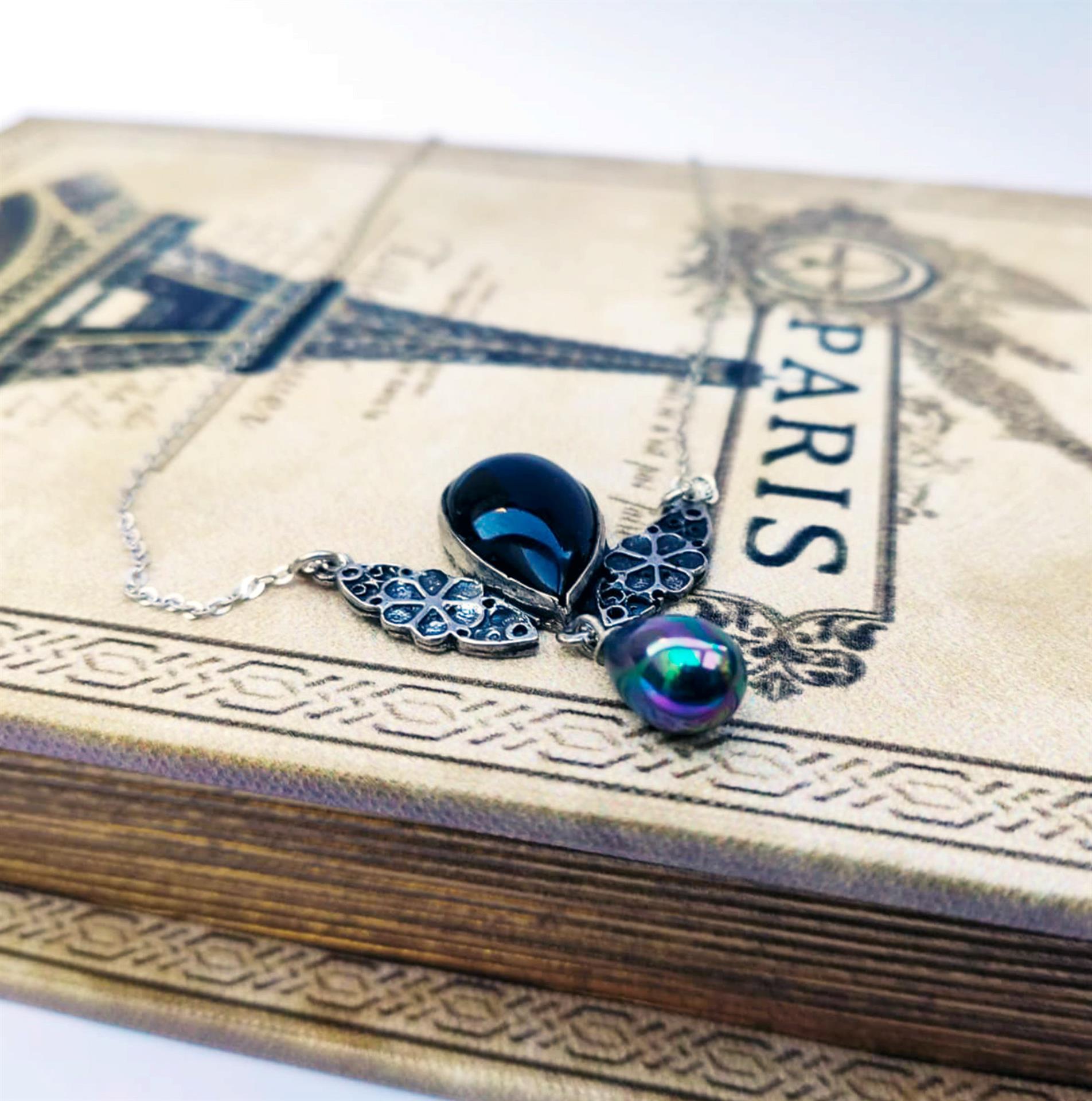 עמוד הבית | חנות | שרשרת כסף אבן שחורה ופנינה