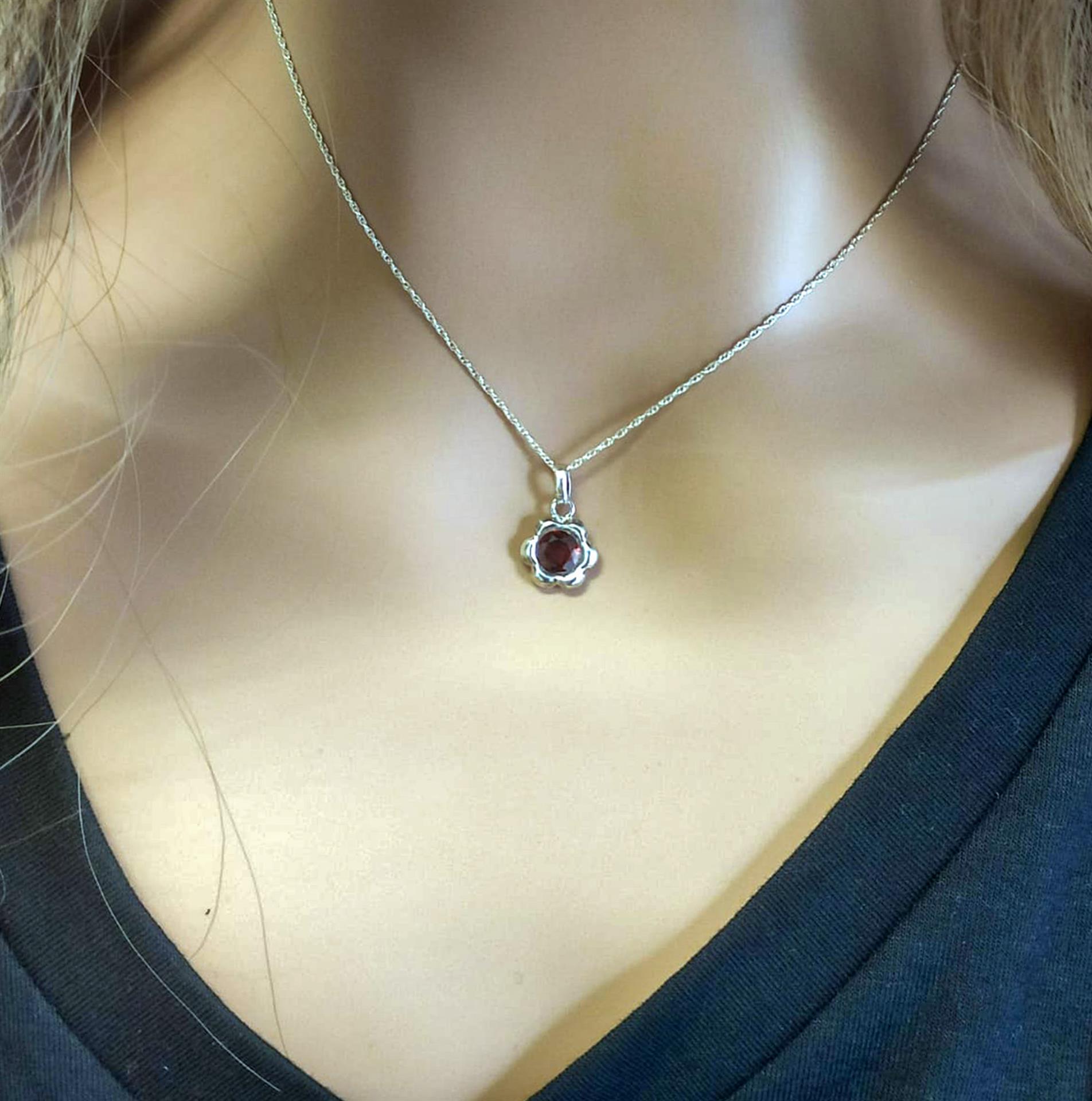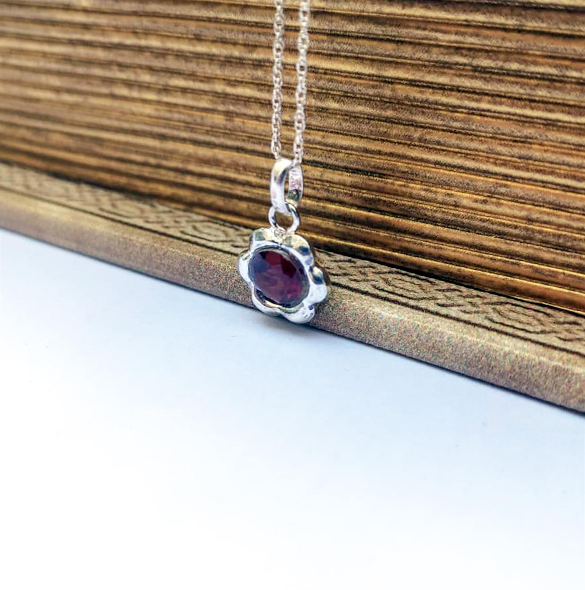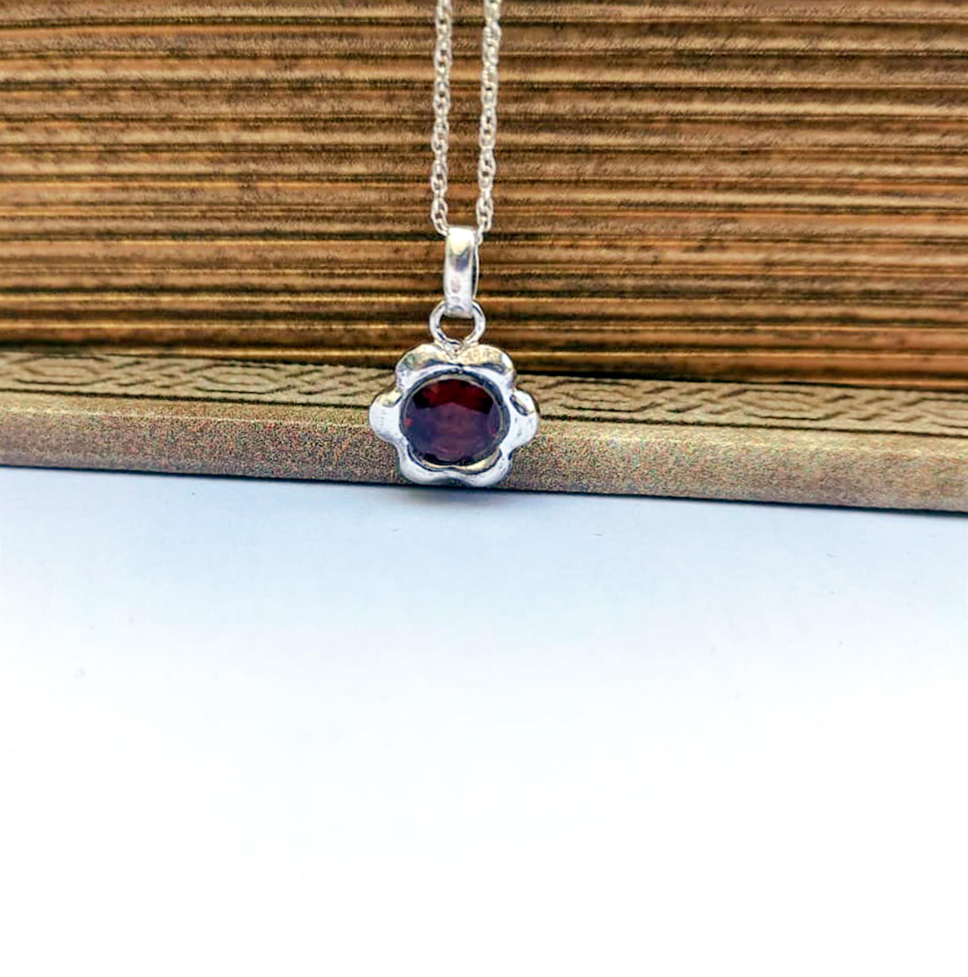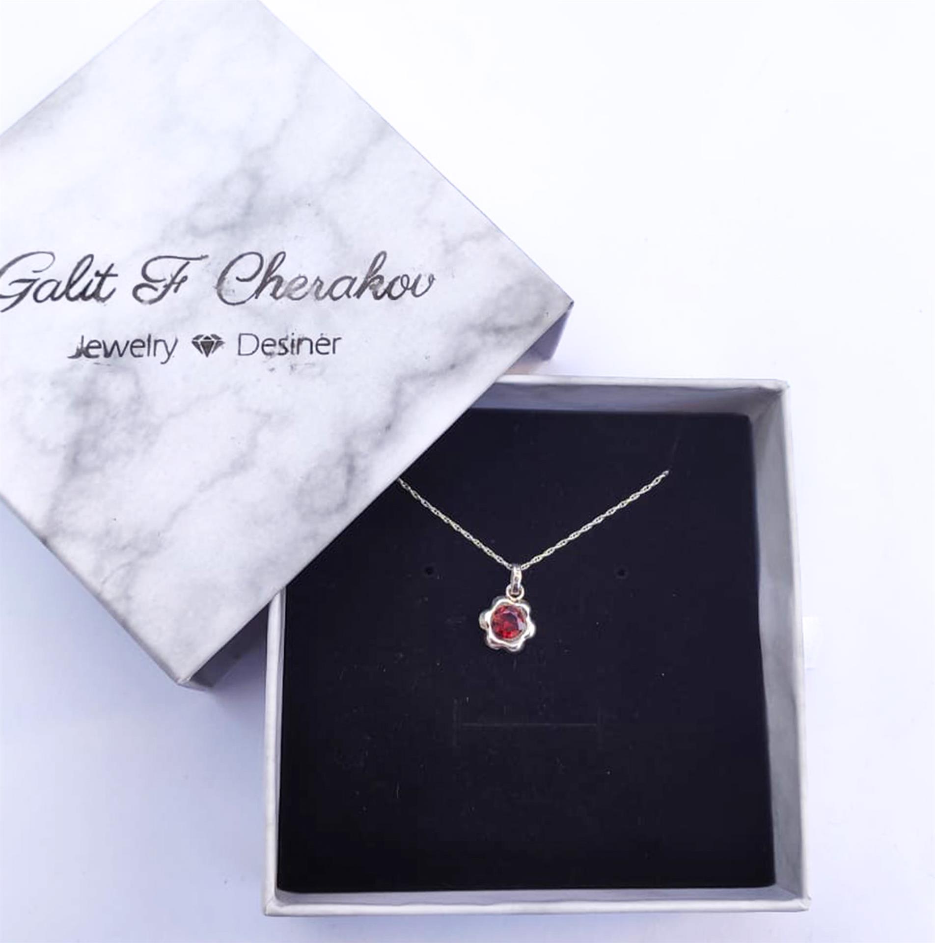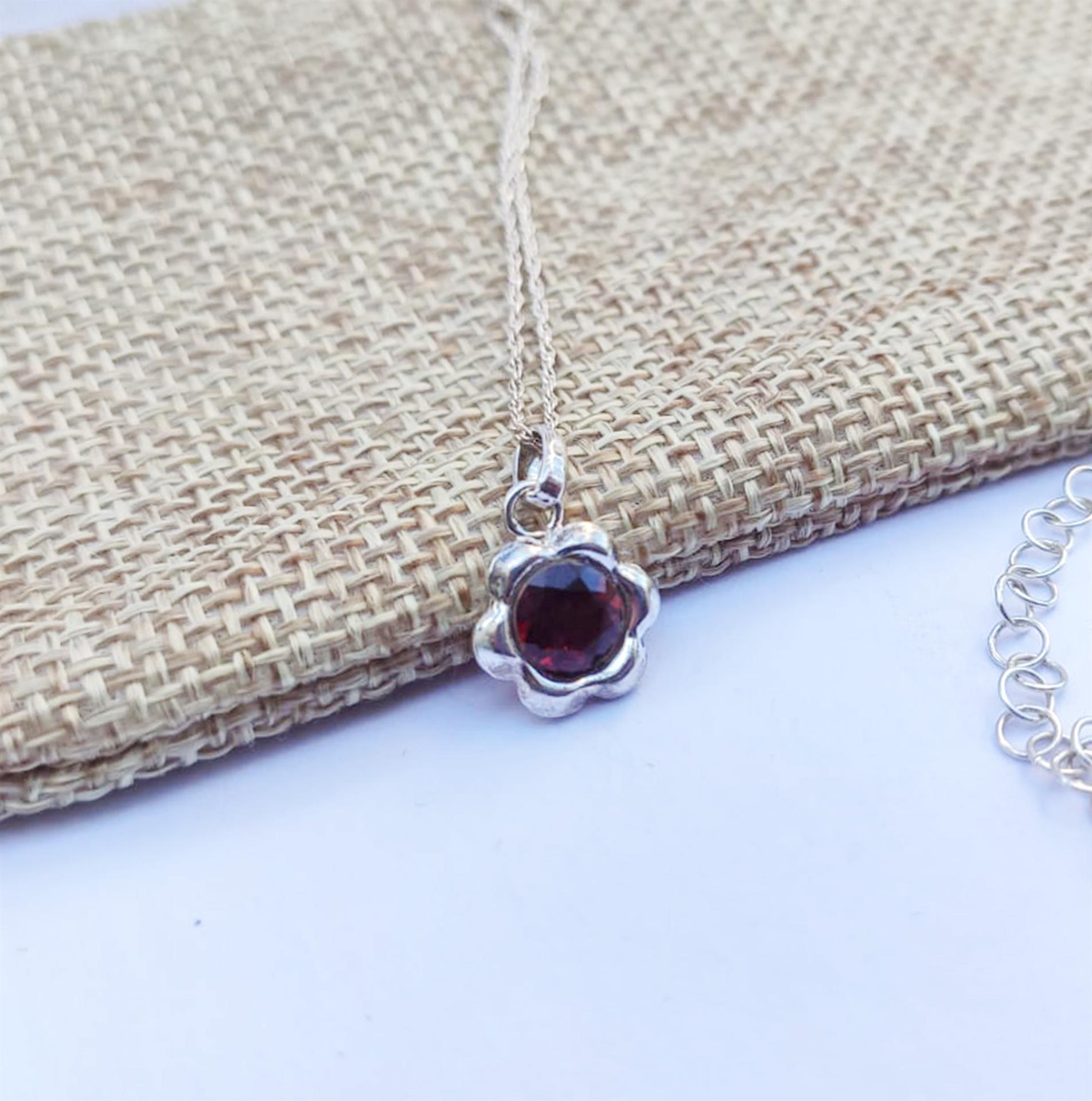 שרשרת כסף פרח עדין ואבן אדומה