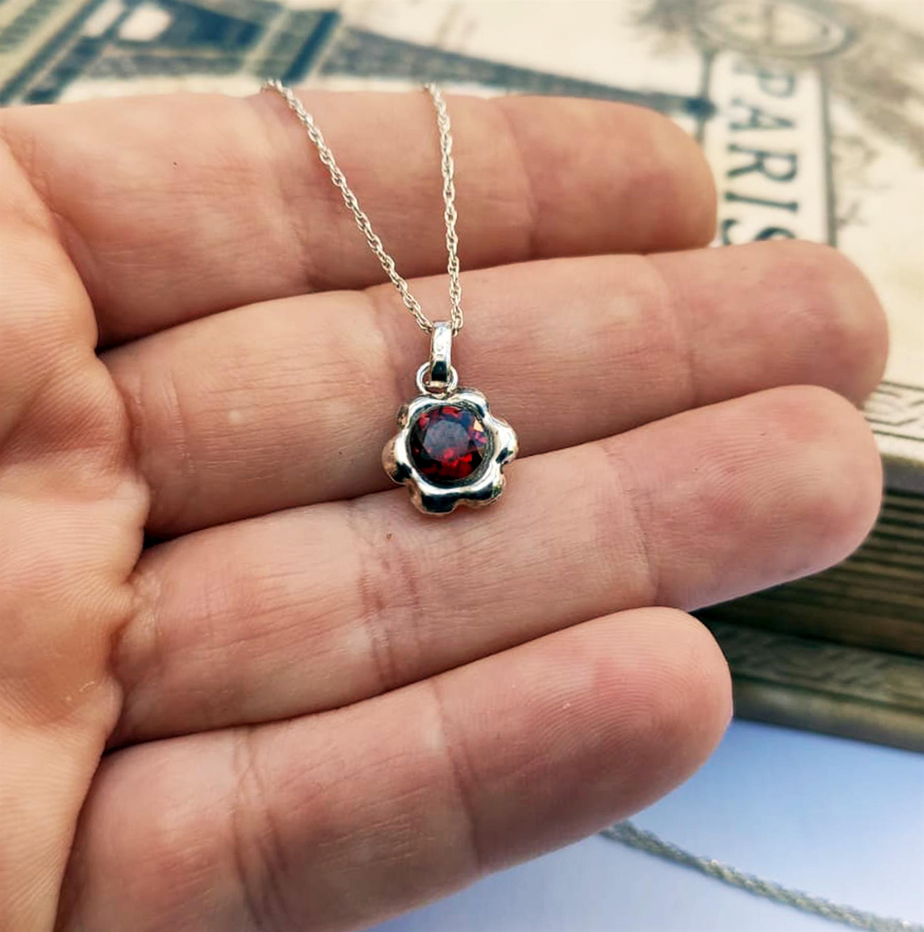 עמוד הבית | חנות | שרשרת כסף פרח עדין ואבן אדומה