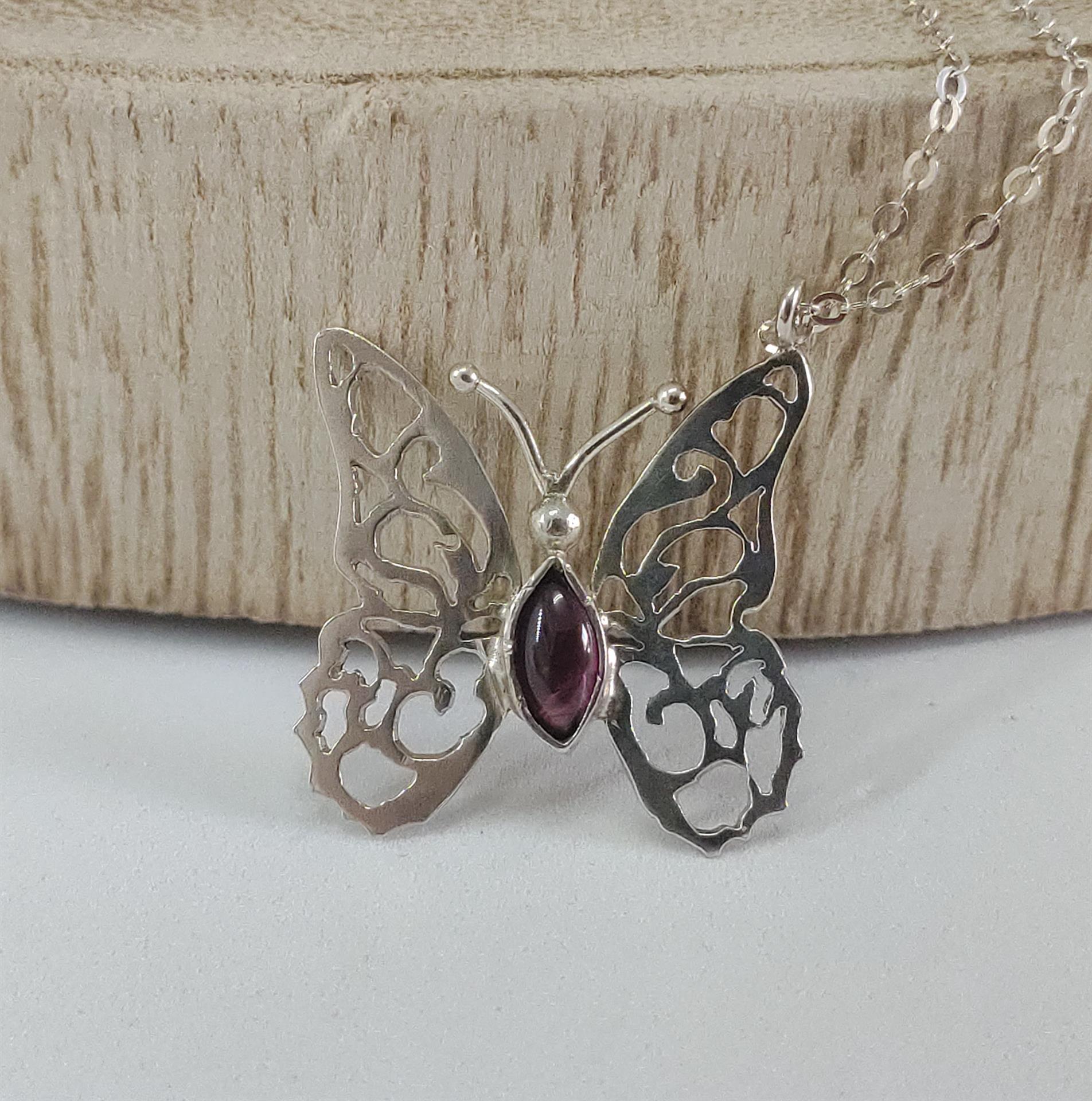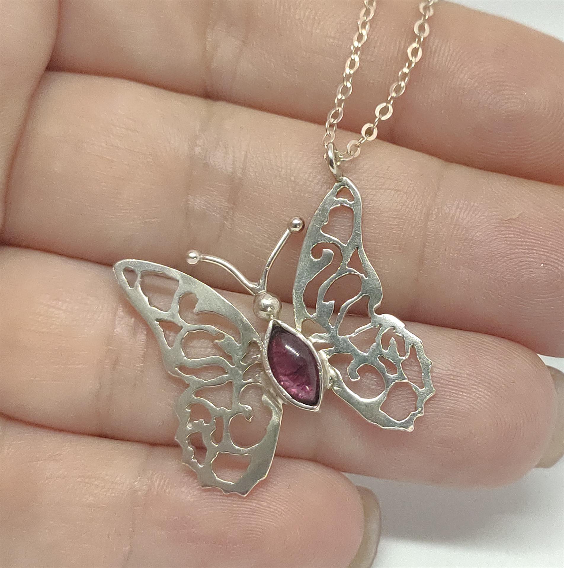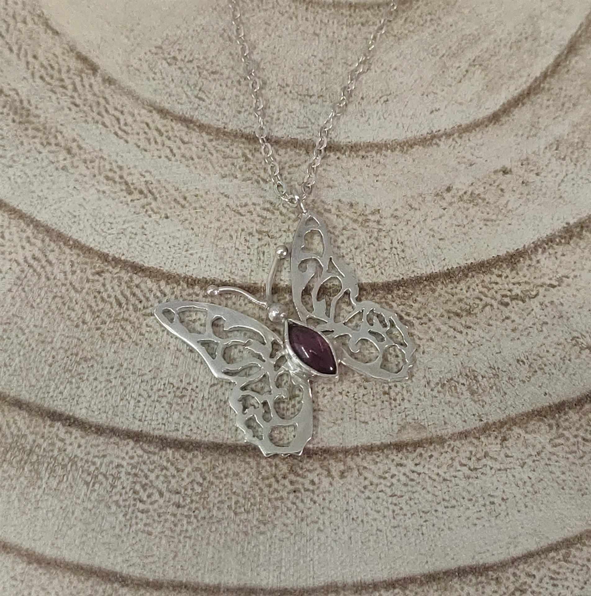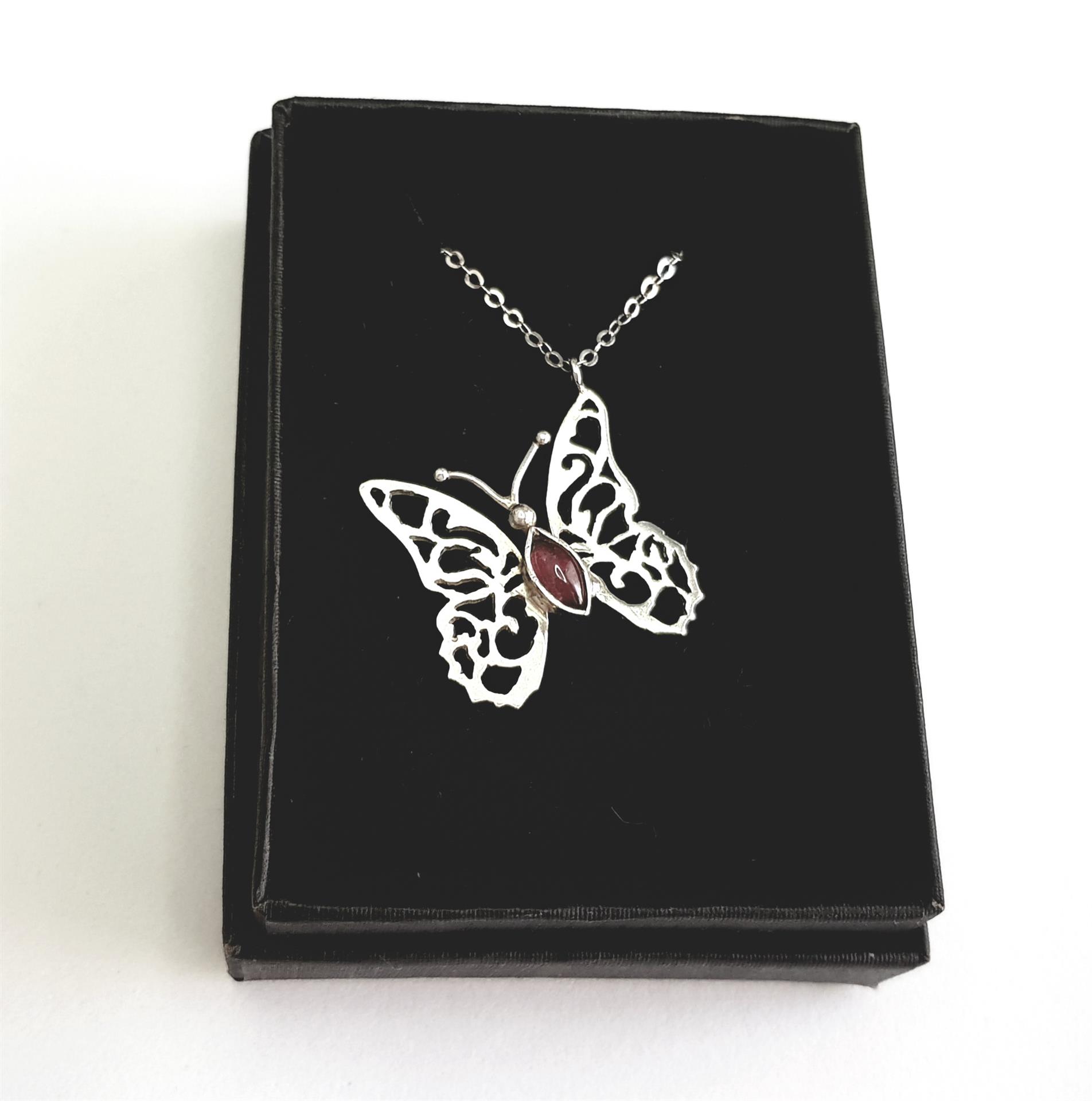 שרשרת כסף פרפר משולבת אבן אדומה גרנט