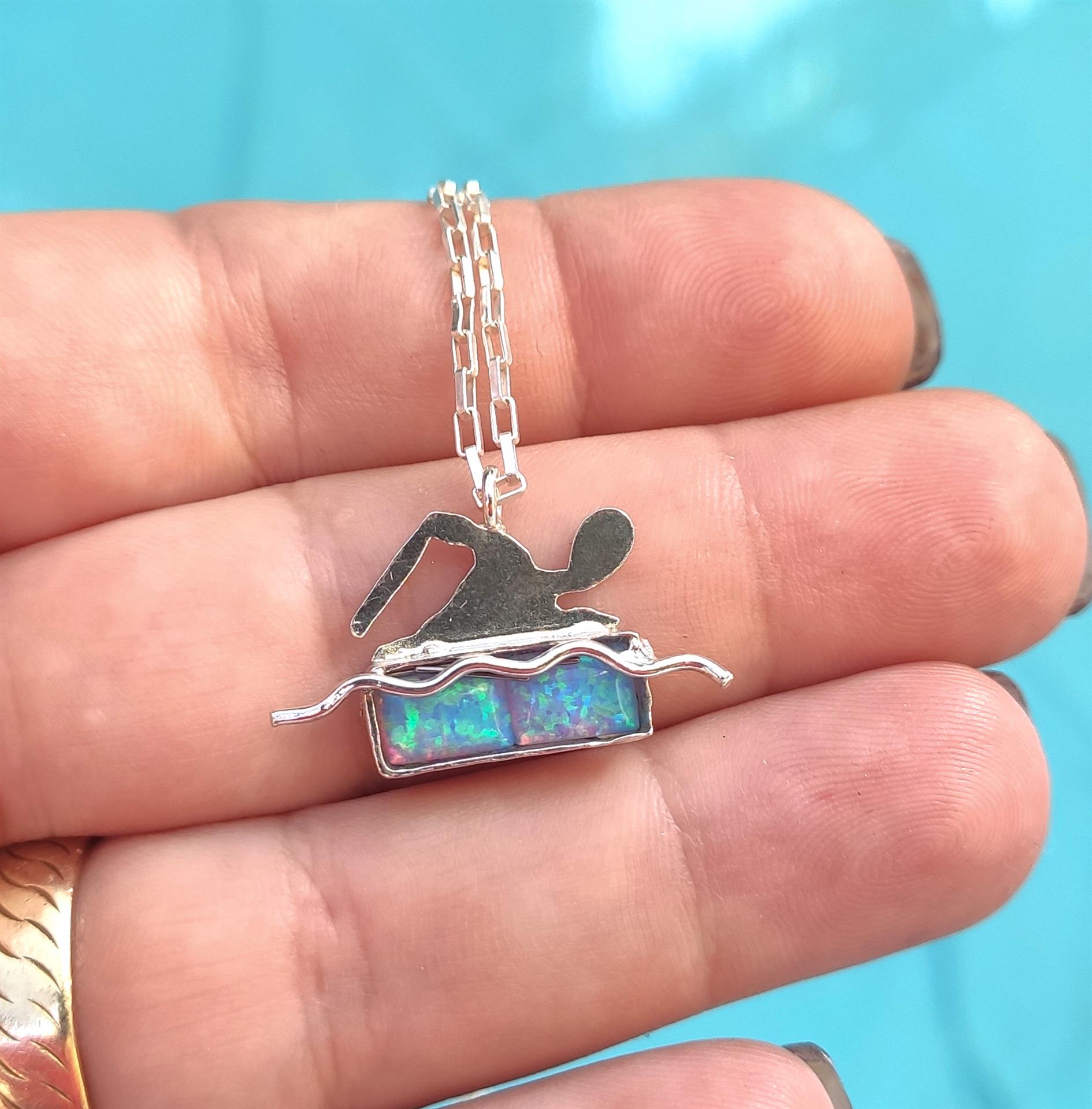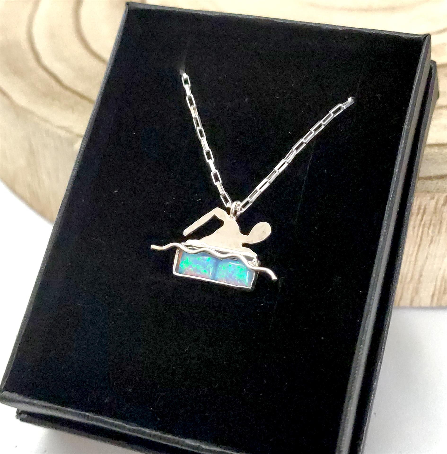 עמוד הבית | חנות | שרשרת כסף שחייה משובץ אופל