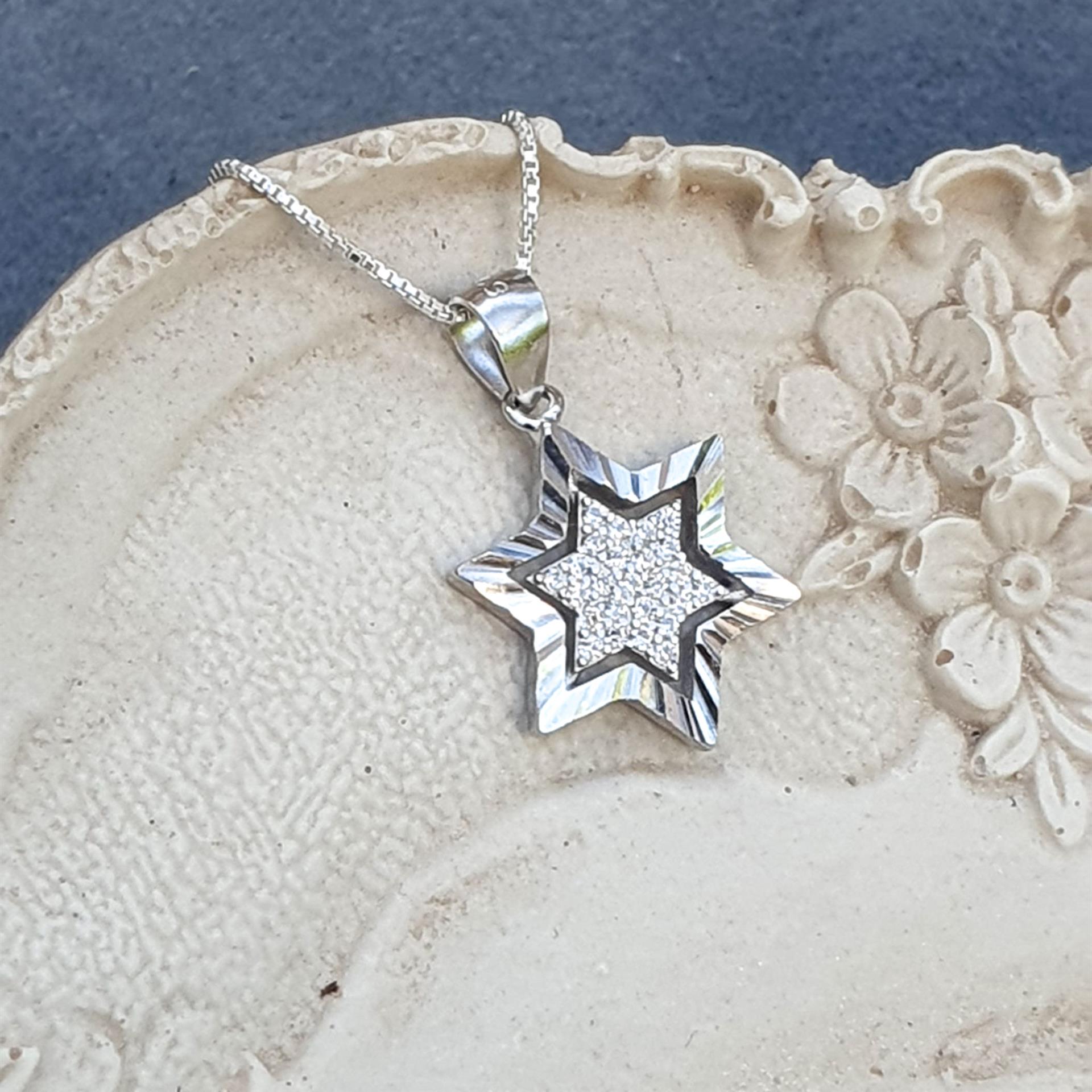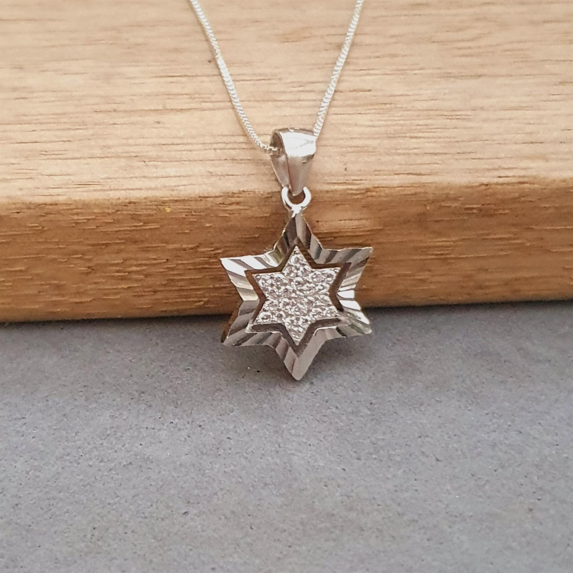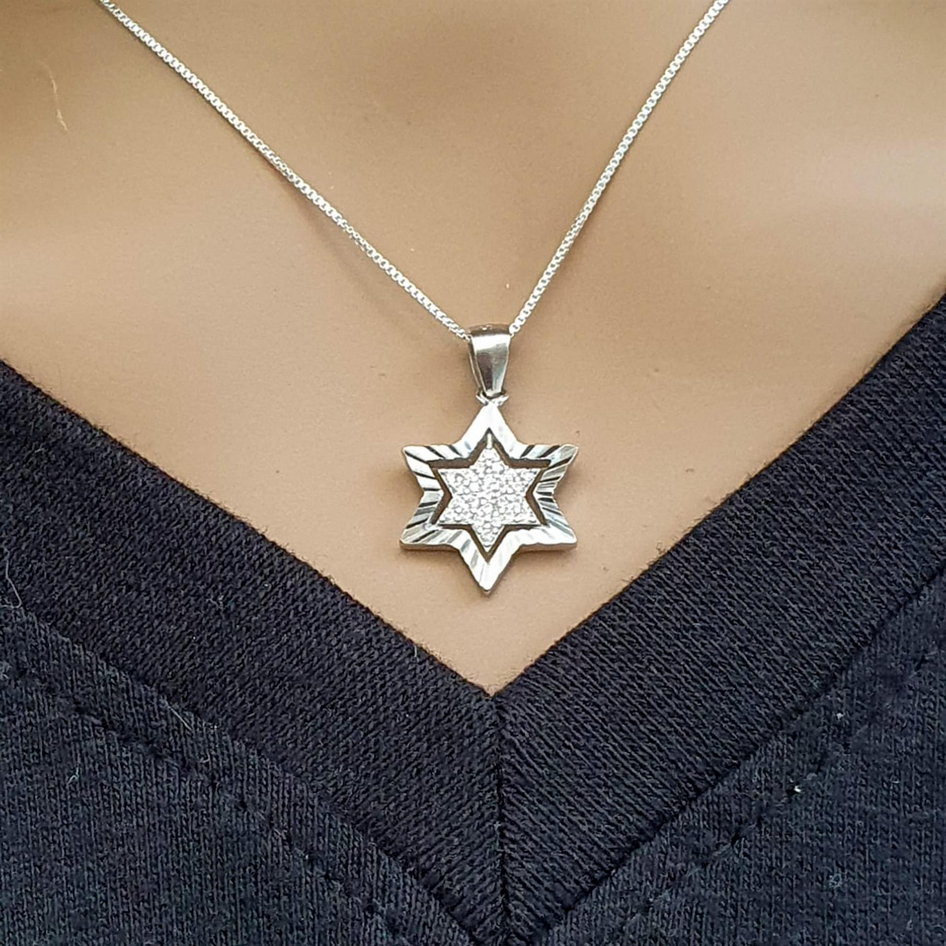 שרשרת זו משלבת את הסמל היהודי העתיק והמשמעותי של מגן דוד עם נגיעות זוהר עדינות של אבני זירקון איכותיות. גודל התליון הקטן והשיבוץ המינימליסטי יוצרים יחד מראה אלגנטי וקלאסי, המתאים ללבישה יומיומית או לאירועים מיוחדים.