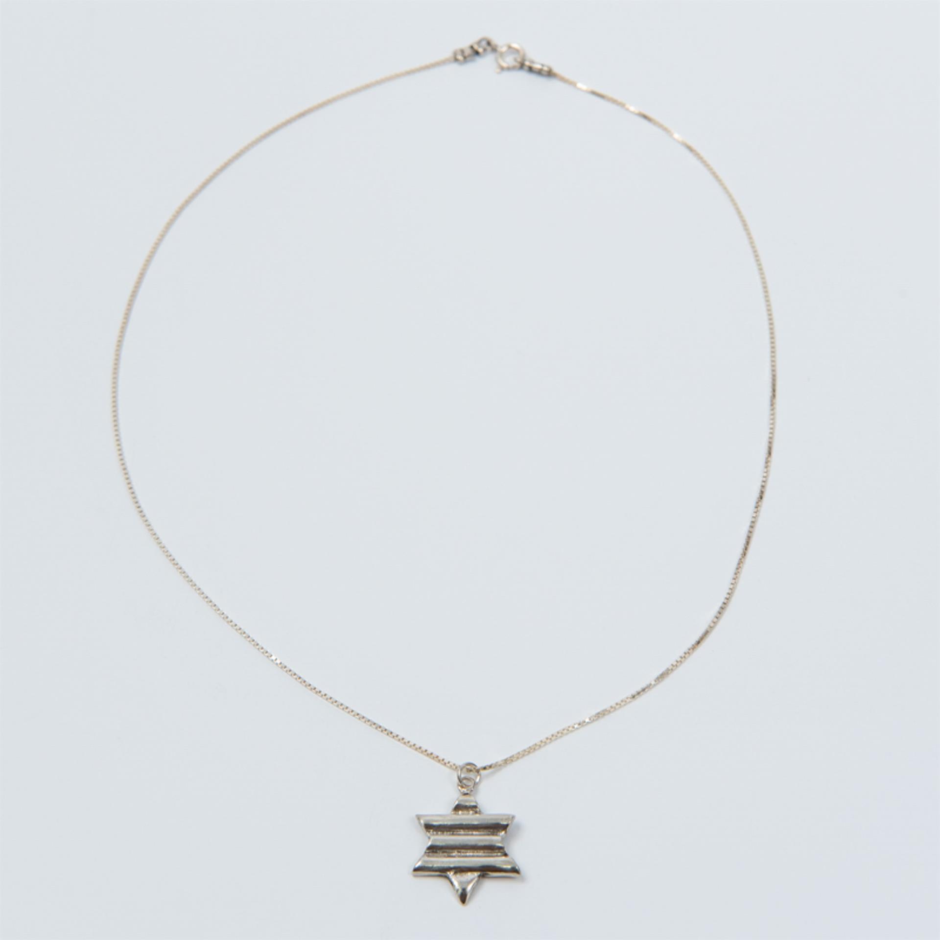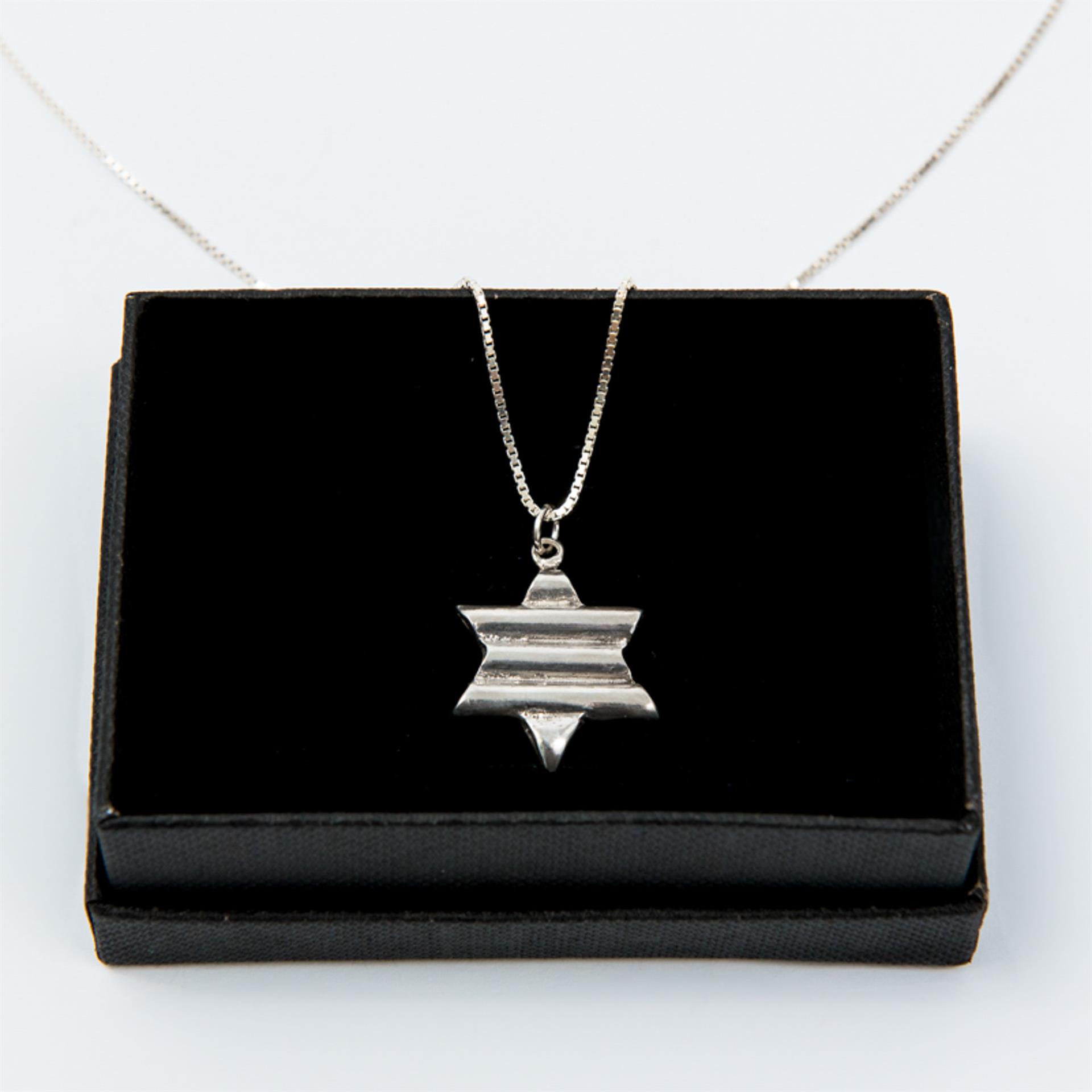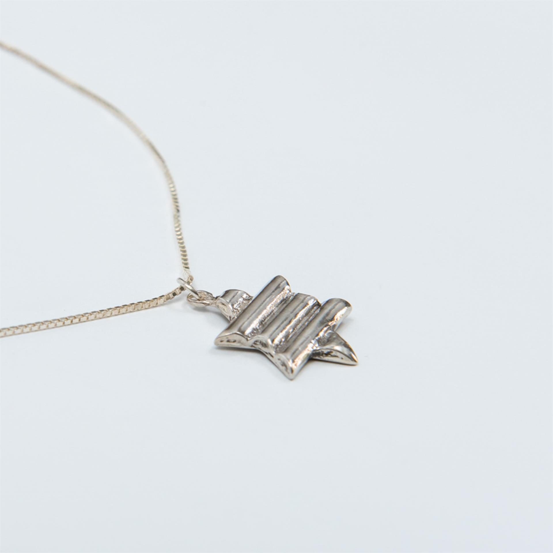 שרשרת זו משלבת את הסמל היהודי העתיק והמשמעותי של מגן דוד עם טוויסט עיצובי מודרני. הפסים המובנים בתליון הכסף מוסיפים עניין ויזואלי וייחודיות, תוך שמירה על האלגנטיות והמשמעות העמוקה של הסמל.