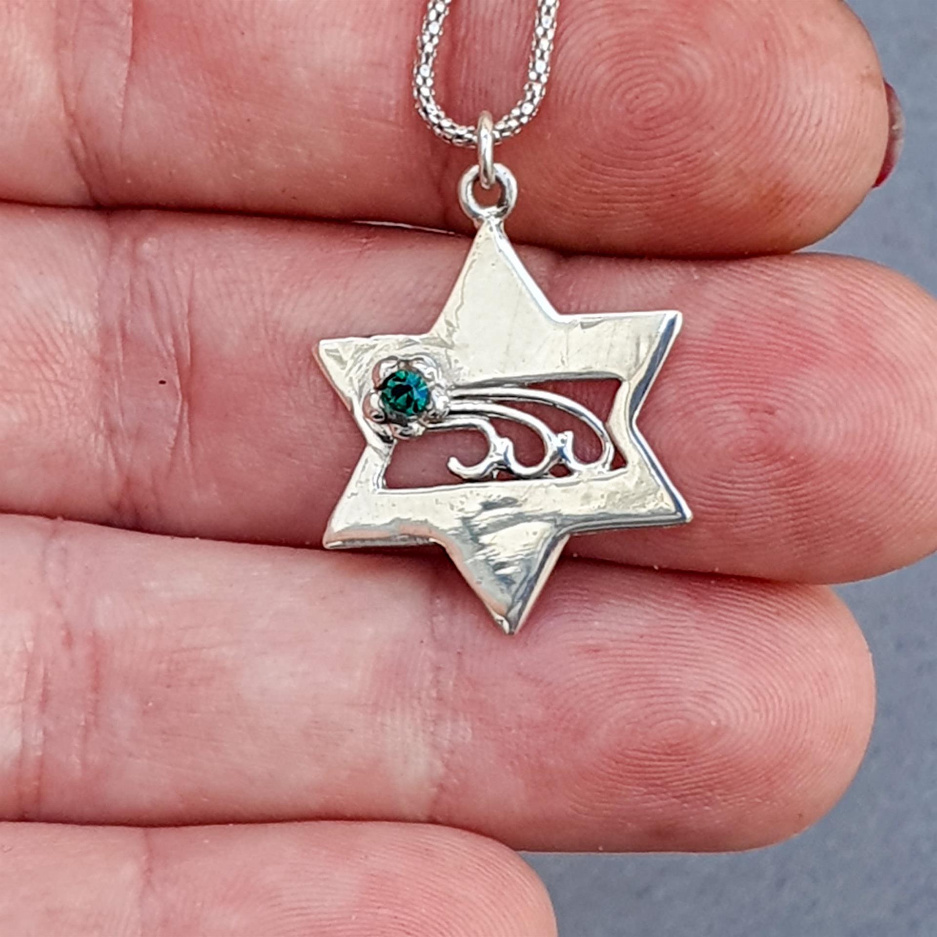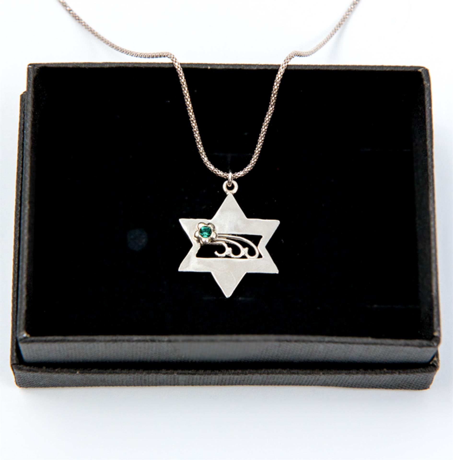 שרשרת זו משלבת את הסמל היהודי העתיק והמשמעותי של מגן דוד עם הזוהר המרהיב של אבן סברובסקי איכותית. השילוב של כסף סטרלינג מבריק ועבודת יד אומנותית יוצר תכשיט בעל נוכחות וקסם אישי. אבן הסברובסקי מוסיפה נגיעה של יוקרה וסטייל מודרני.