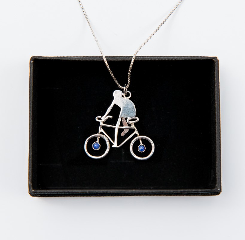 השרשרת הזו היא התכשיט המושלם עבור רוכבים, חובבי אופניים, או כל מי שמעריך את החופש והתשוקה שברכיבה. התליון המעוצב משדר את הדינמיות והאנרגיה של האופניים, בעוד שאבן הלאפיס לזולי, הידועה בגווניה הכחולים העמוקים והפיגמנטים הזהובים, מוסיפה נגיעה של חוכמה, שלווה וחיבור לטבע. זוהי דרך אלגנטית ואישית להביע אהבה לספורט ולחיים.