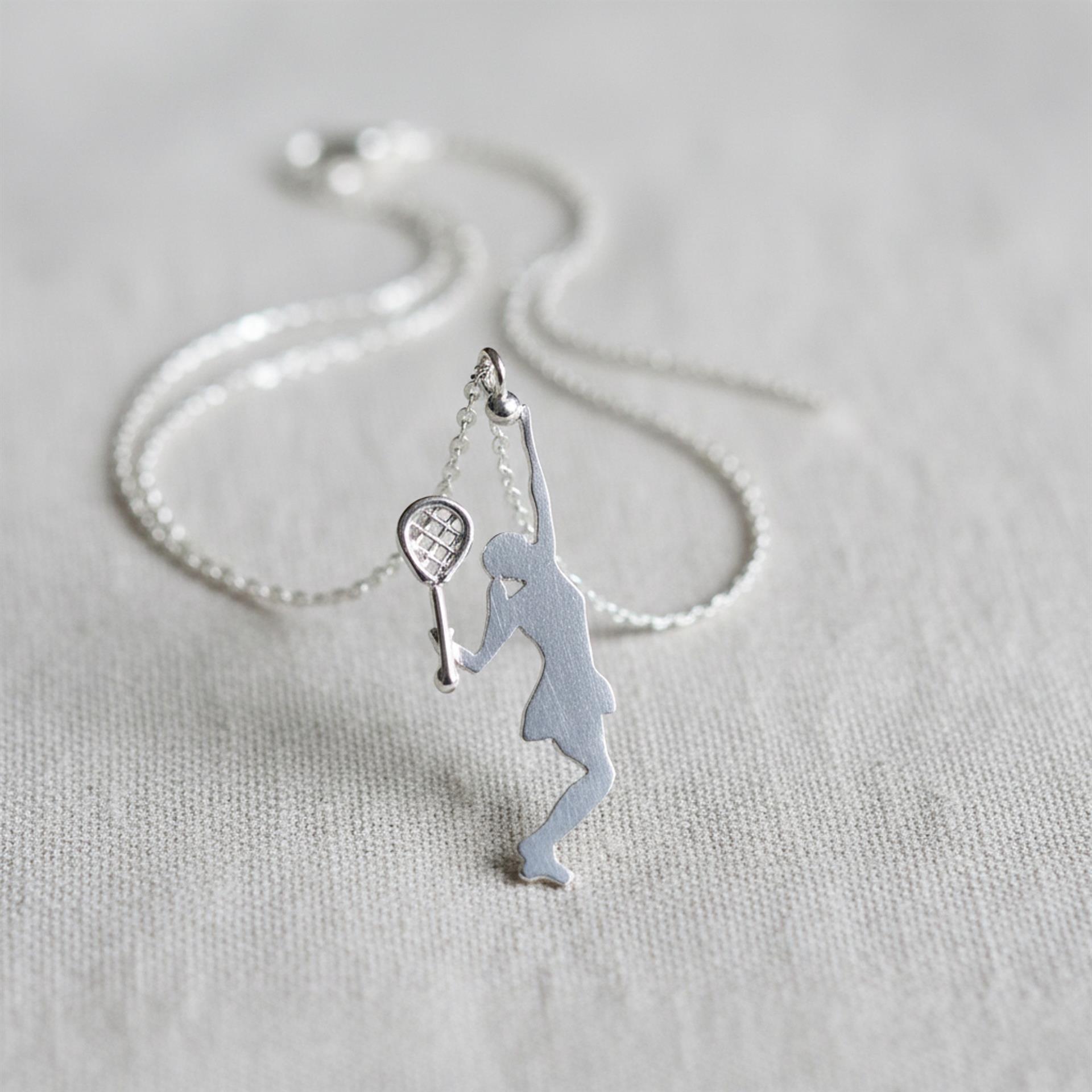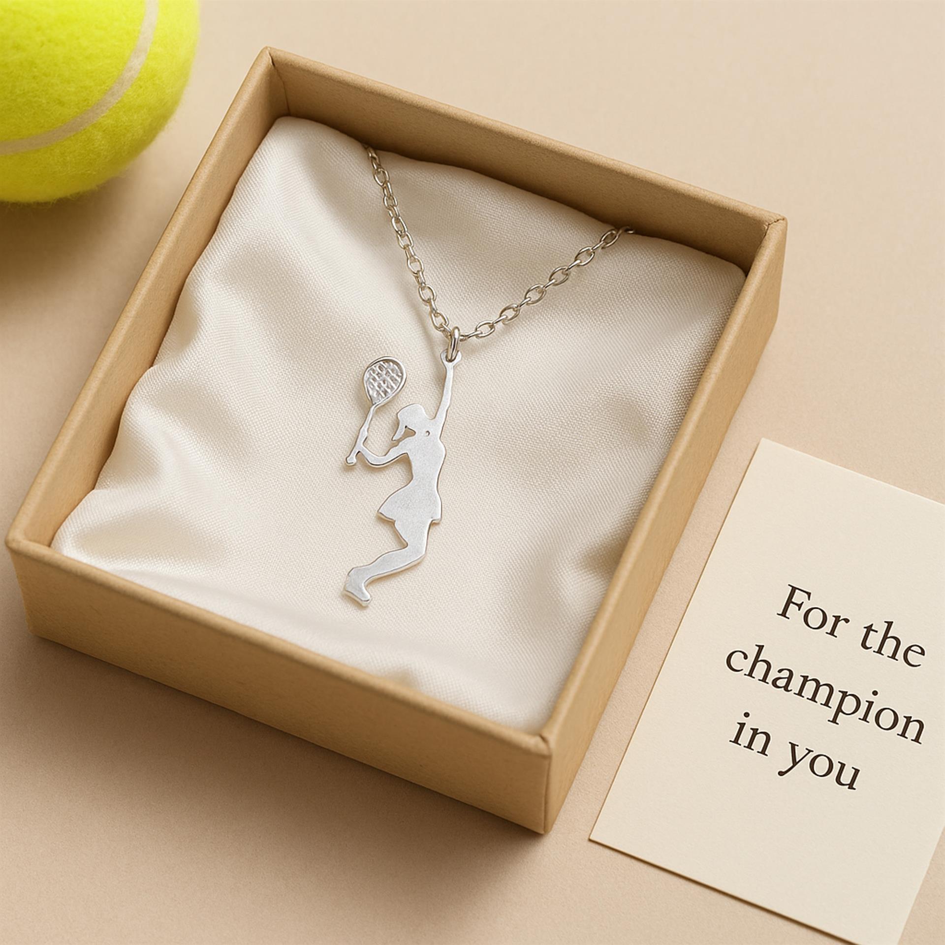 שרשרת ייחודית בעבודת יד מכסף 925, בעיצוב אלגנטי של שחקנית טניס בתנופת חבטה.
