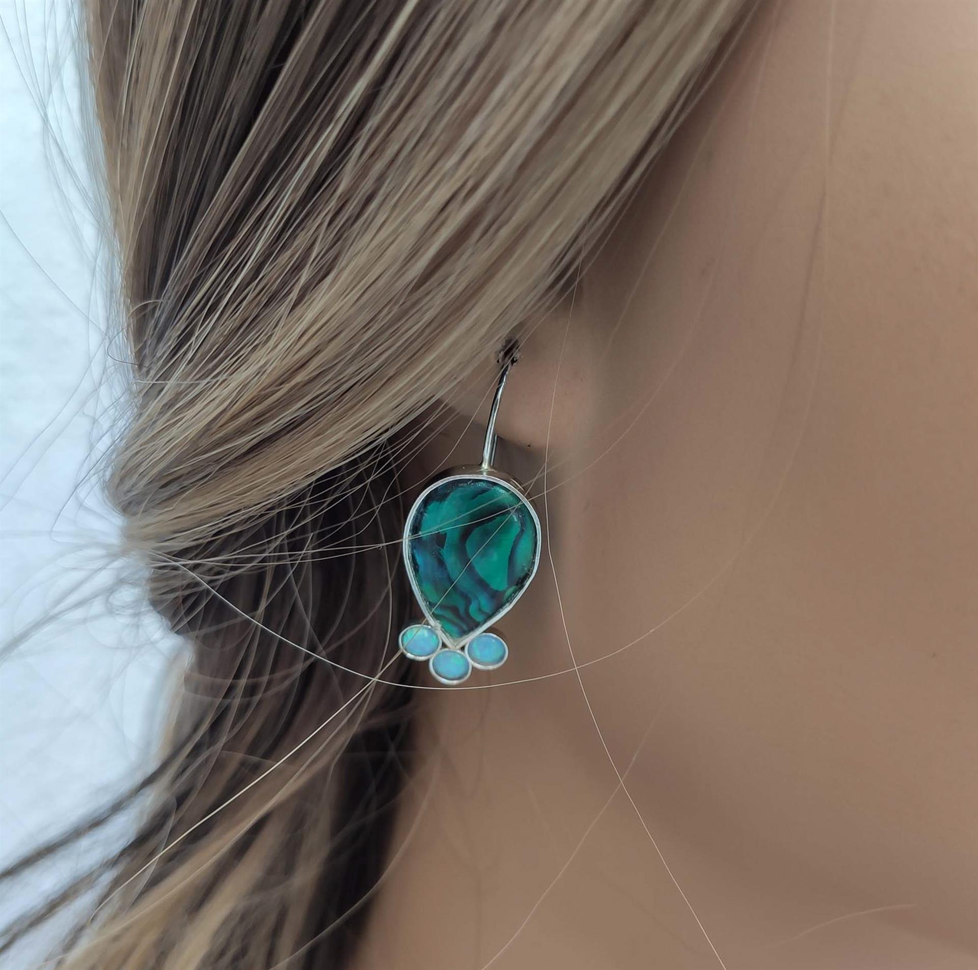 עגילי כסף עם צדף עגול בגווני ירוק משולבים אבני אופל תכלת הם תכשיט מושלם שישדרג את כל לוק בסטייל ובאופנה. העגילים עשויים מכסף 925 איכותי ומעוטרים בצדף אבלון ואבני אופל תכלת מרהיבות. הצדף העגול מוסיף נצנוץ ויוקרה לעגילים, בעוד שהאבנים התכלת מעניקות צבע וסטייל מיוחדים. העגילים המרהיבים הללו יכולים להיות מתנה מושלמת לאדם יקר בחיים או פשוט תגרום לך להרגיש יותר יפה ובטוחה בכל אירוע או מקום שתמצאי בו. הוספי נגיעה מיוחדת לסטייל שלך עם עגילי הכסף המרהיבים האלו.