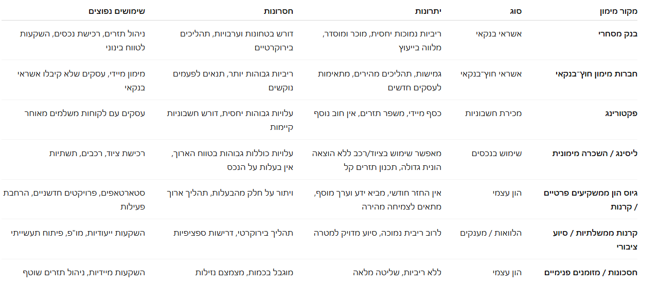 שילוב בין מקורות מימון שונים – בנקאות, גופים חוץ-בנקאיים, משקיעים פרטיים ועוד.